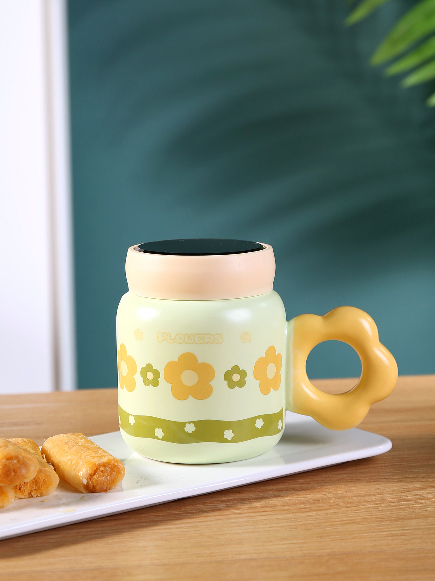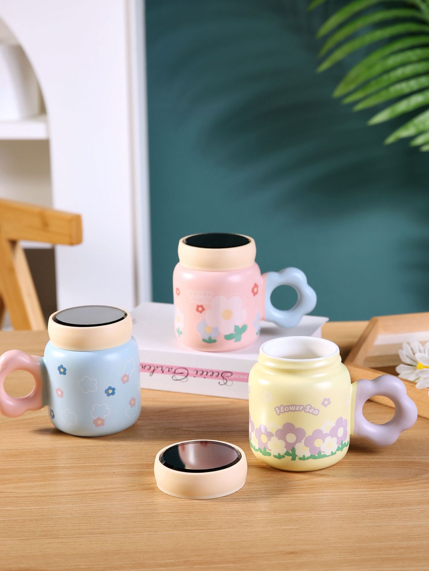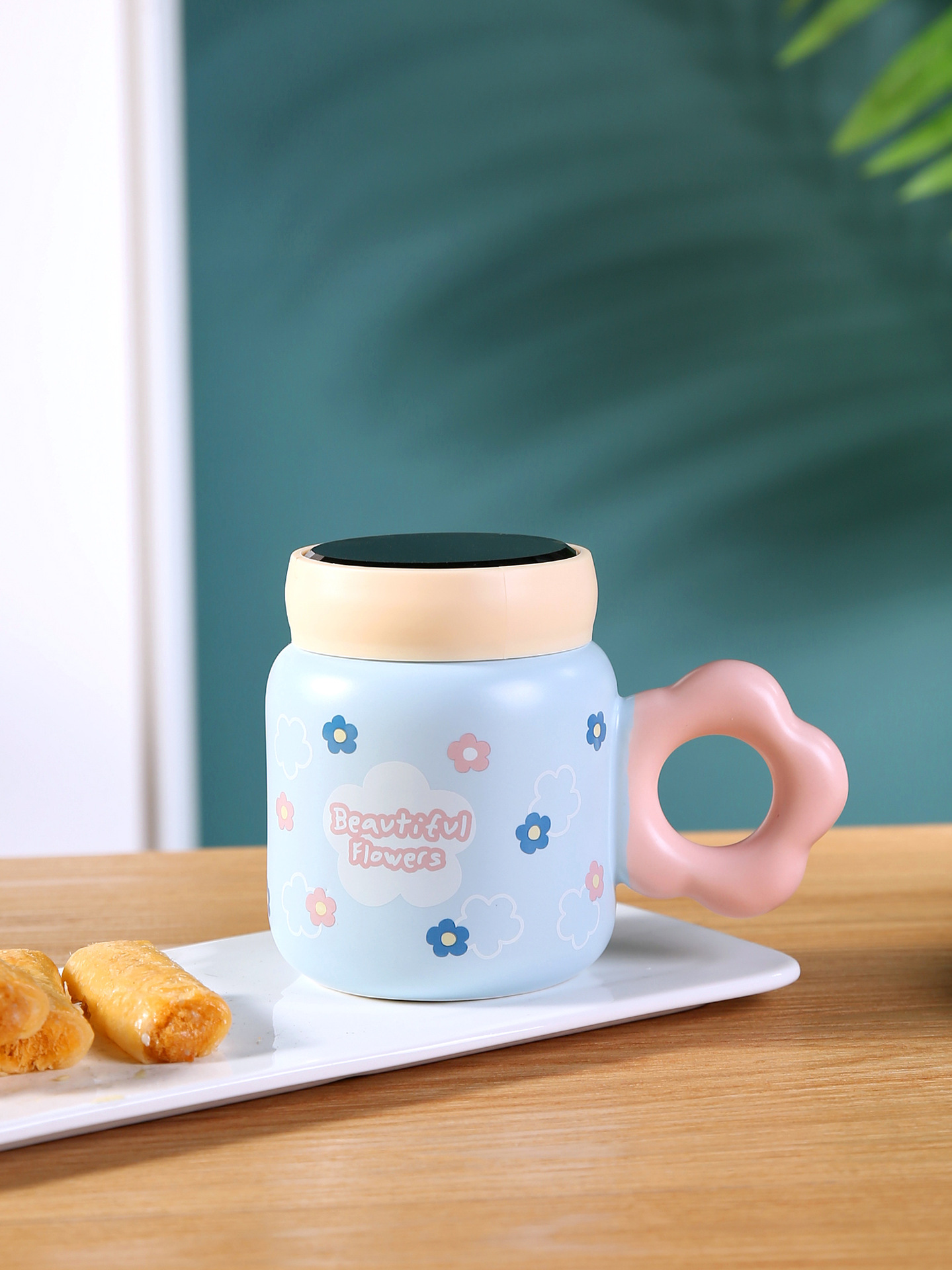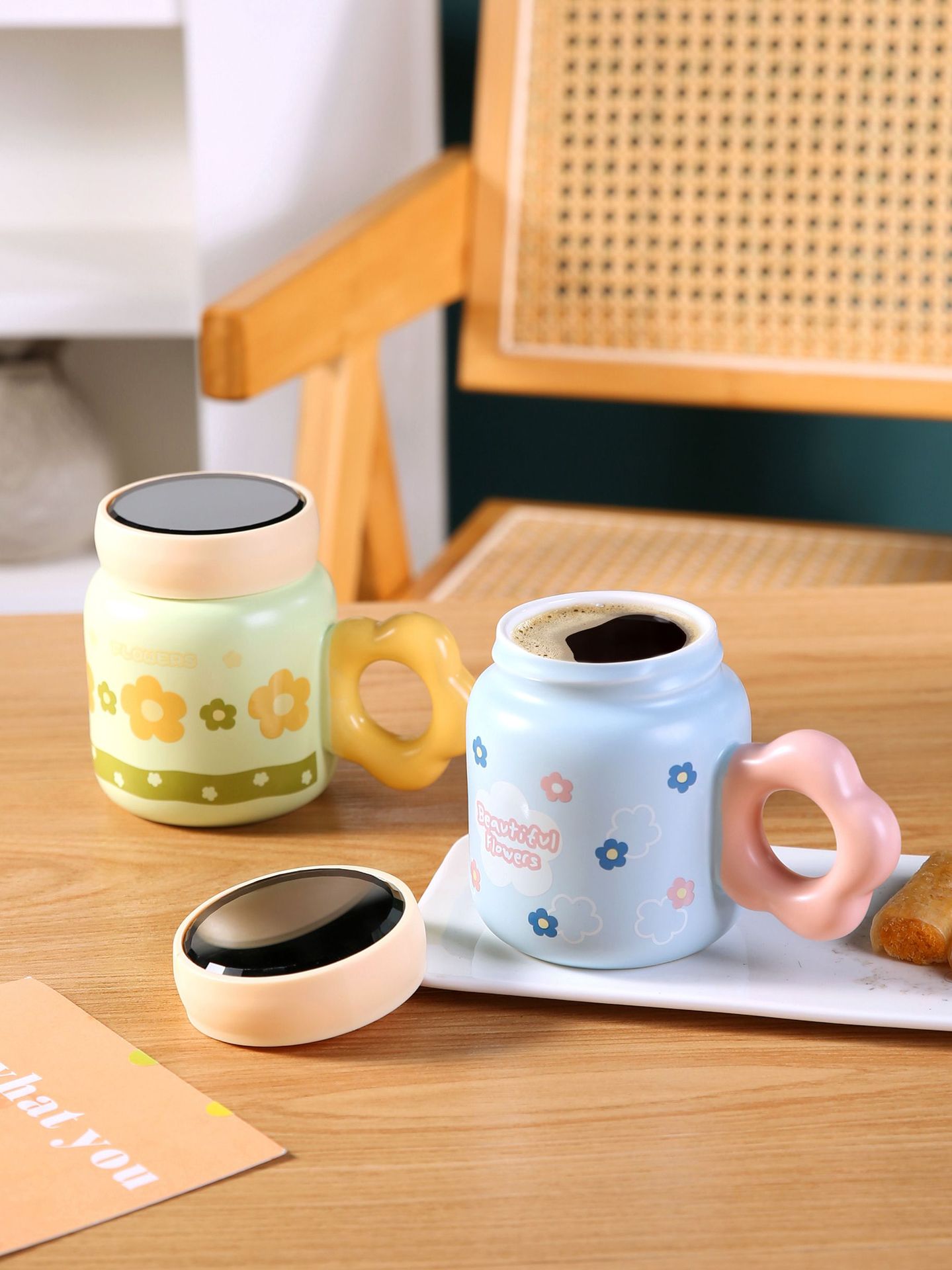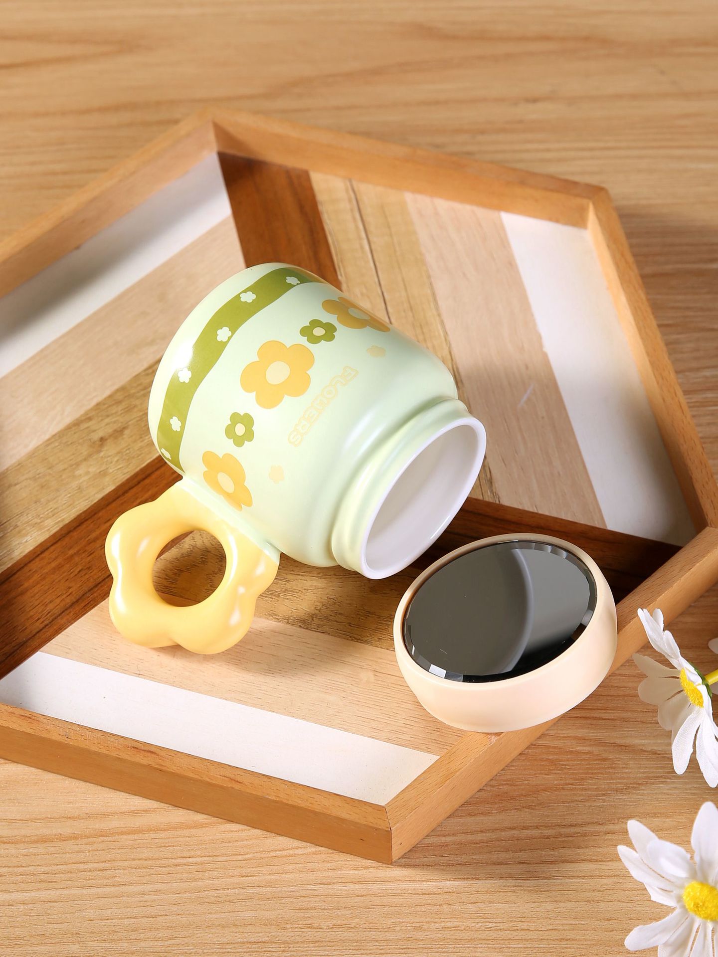 A high-appearance-level, cute and pastoral series hand-painted flower, fresh and clean mirror ceramic cup for girls' breakfast milk cup