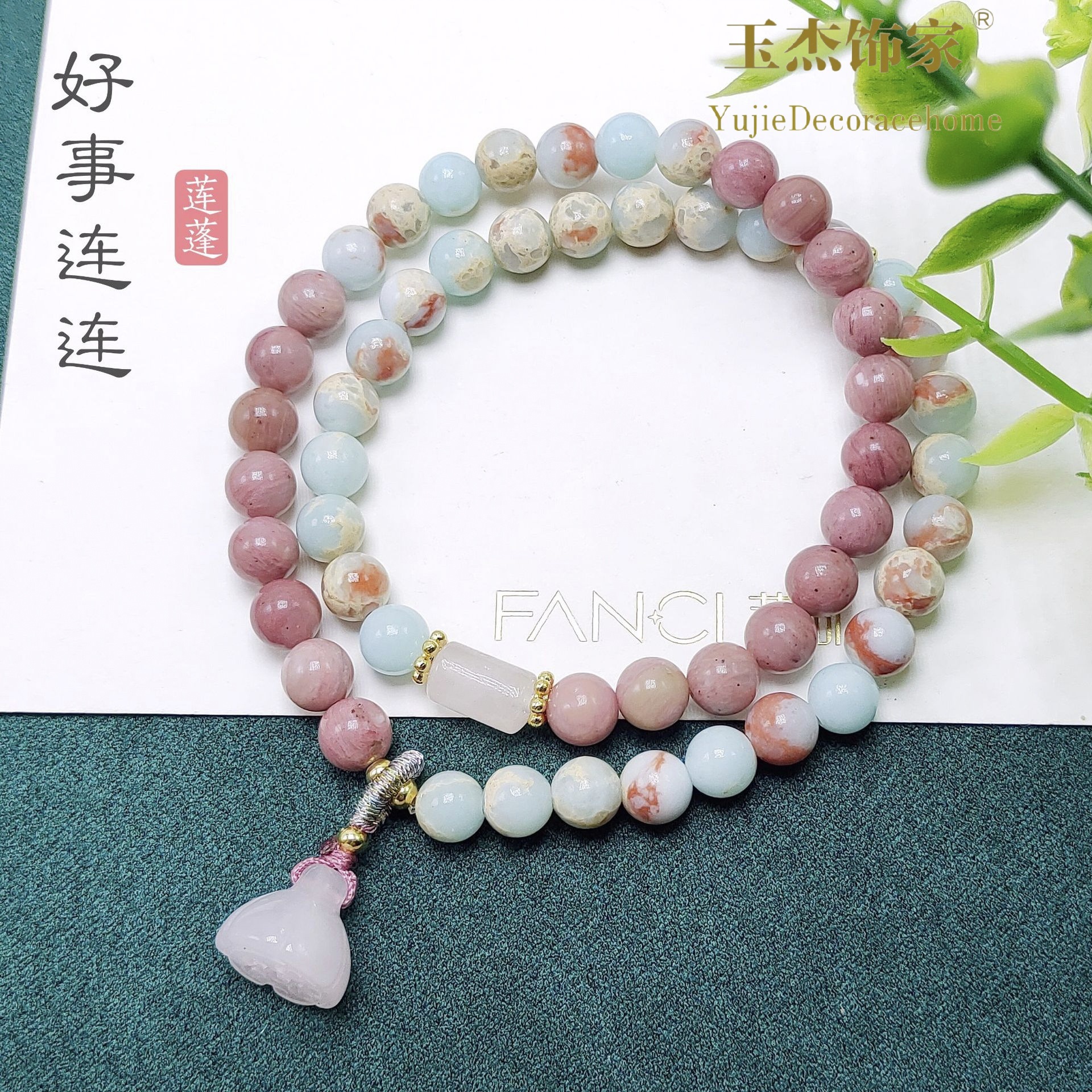 Product Name: Rose and Red Pattern Stone Lotus Pod Bracelet