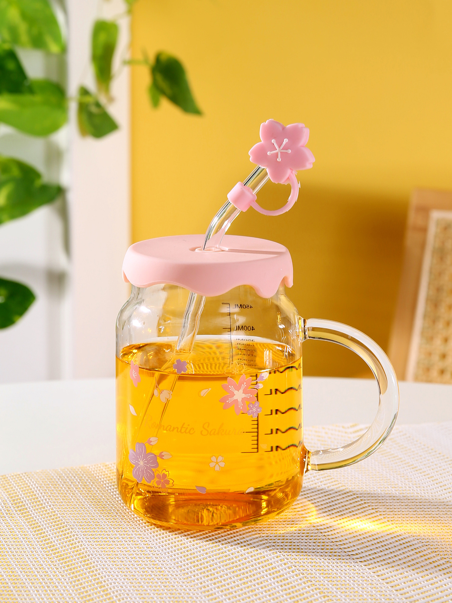 A high-quality, stylish, inS-style, fresh and delicate floral glass water cup for home use, a milk cup for girls' offices with a lid and a straw