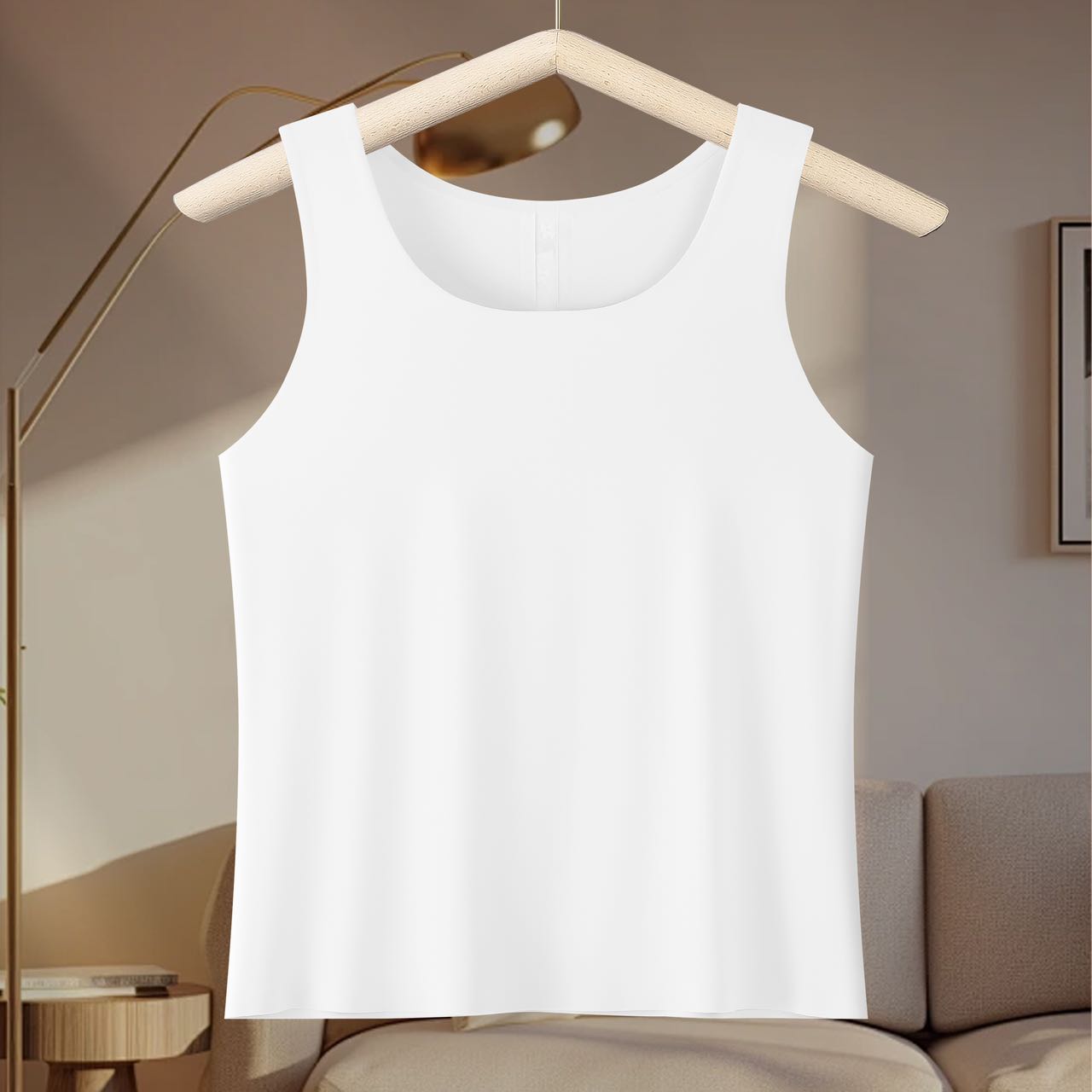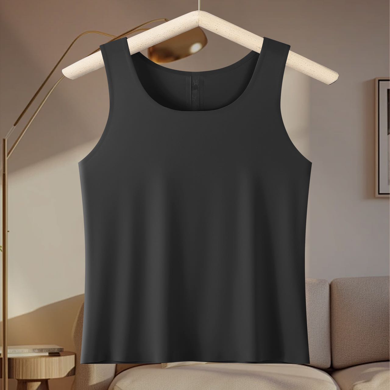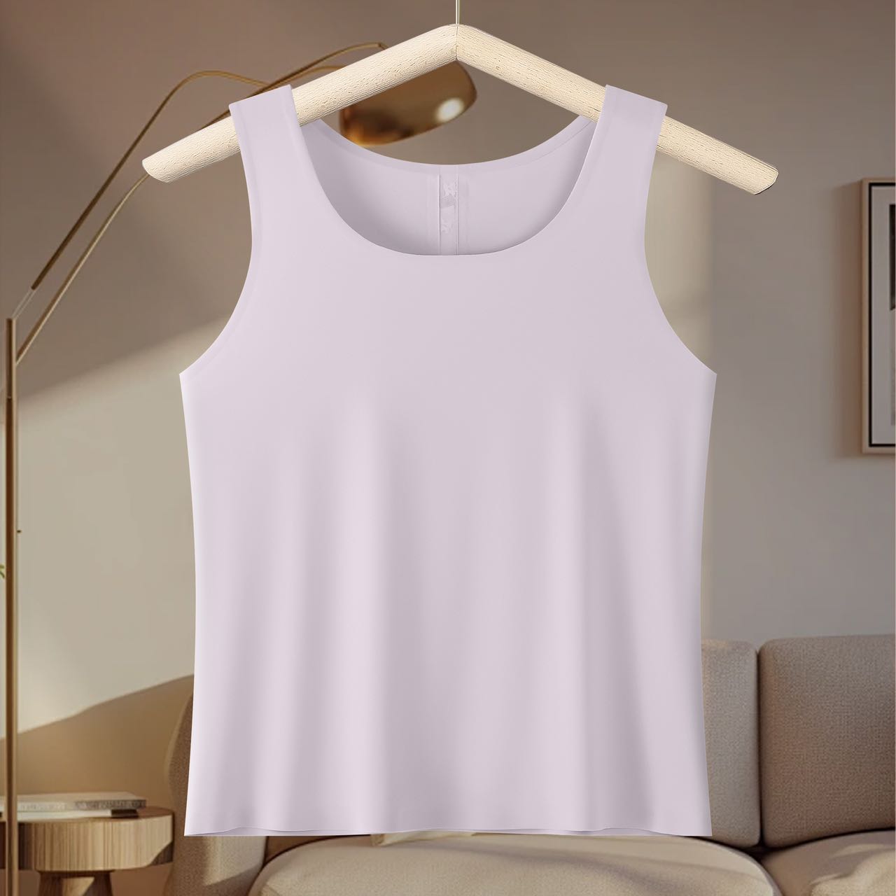 A lace mesh spliced ice silk seamless, skin-friendly, breathable and comfortable anti-slip wide shoulder strap base vest
