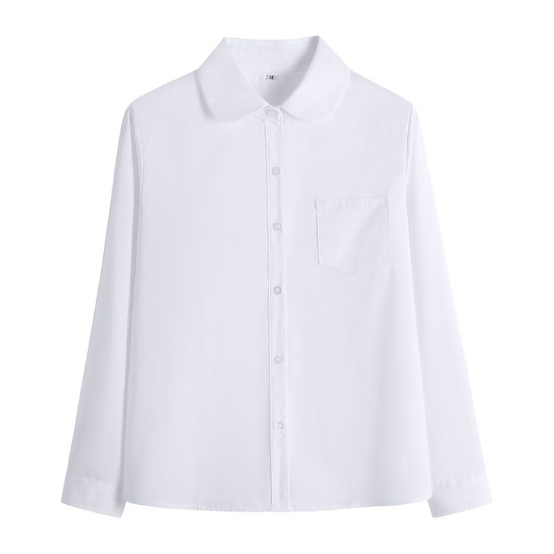 A girl's short-sleeved, pointed-neck white shirt