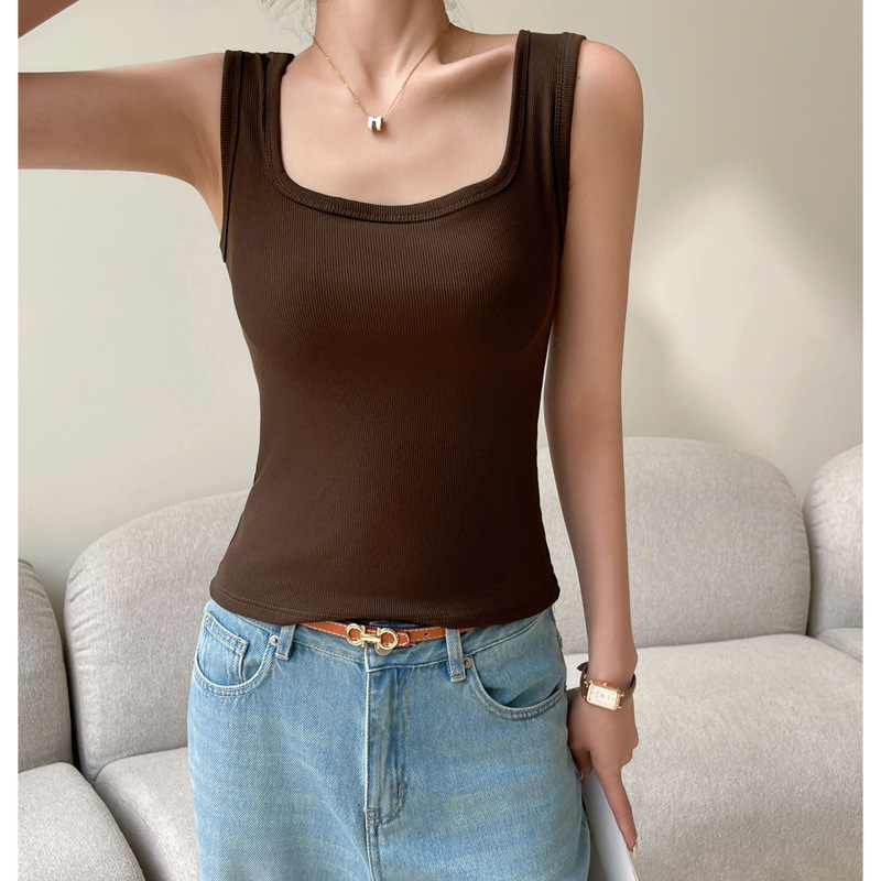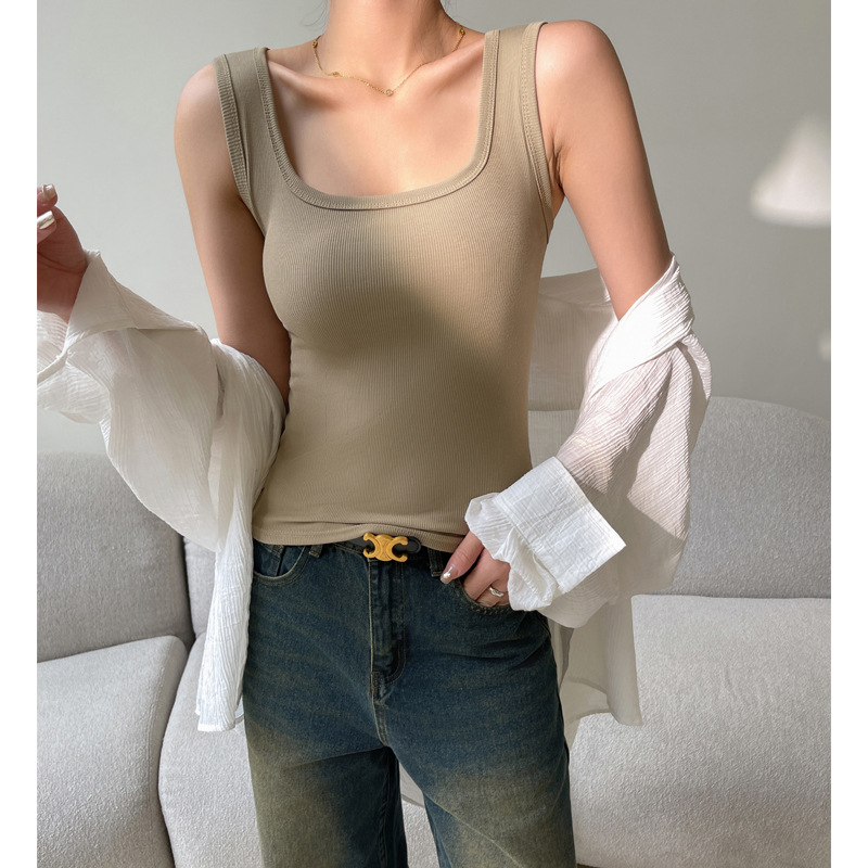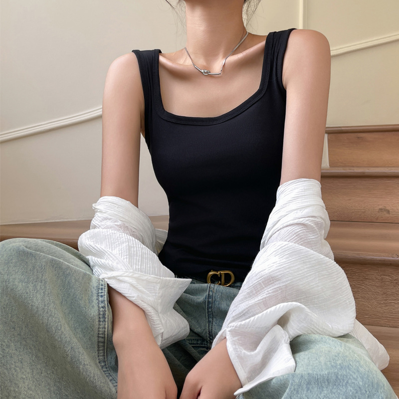 A large-sized women's screw-knit square neck base vest with a small halter top for a high-end sleeveless top in spring and summer