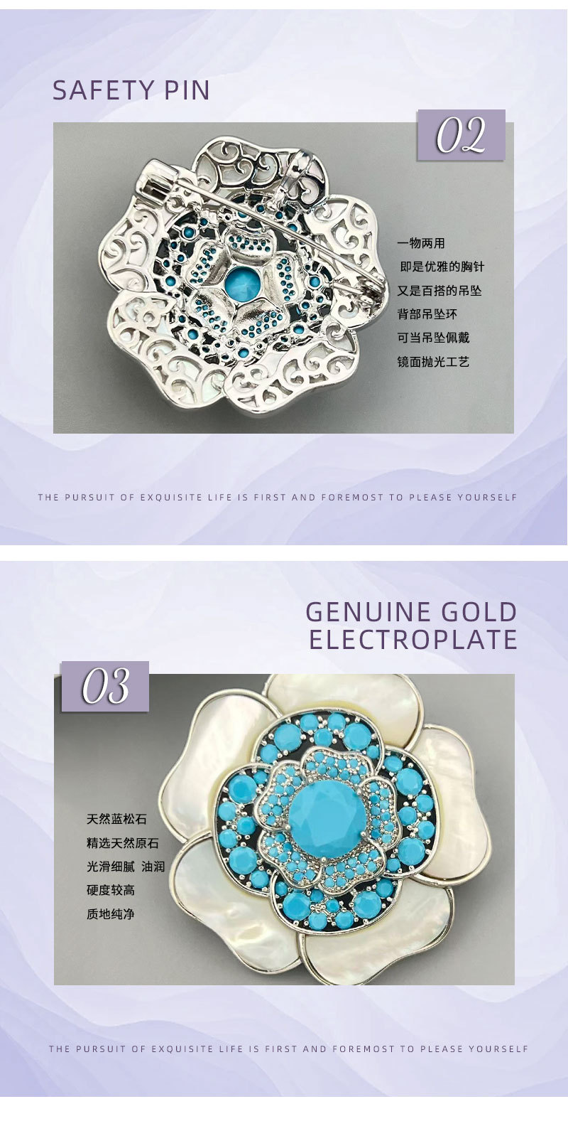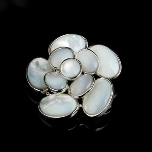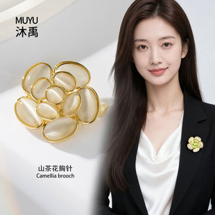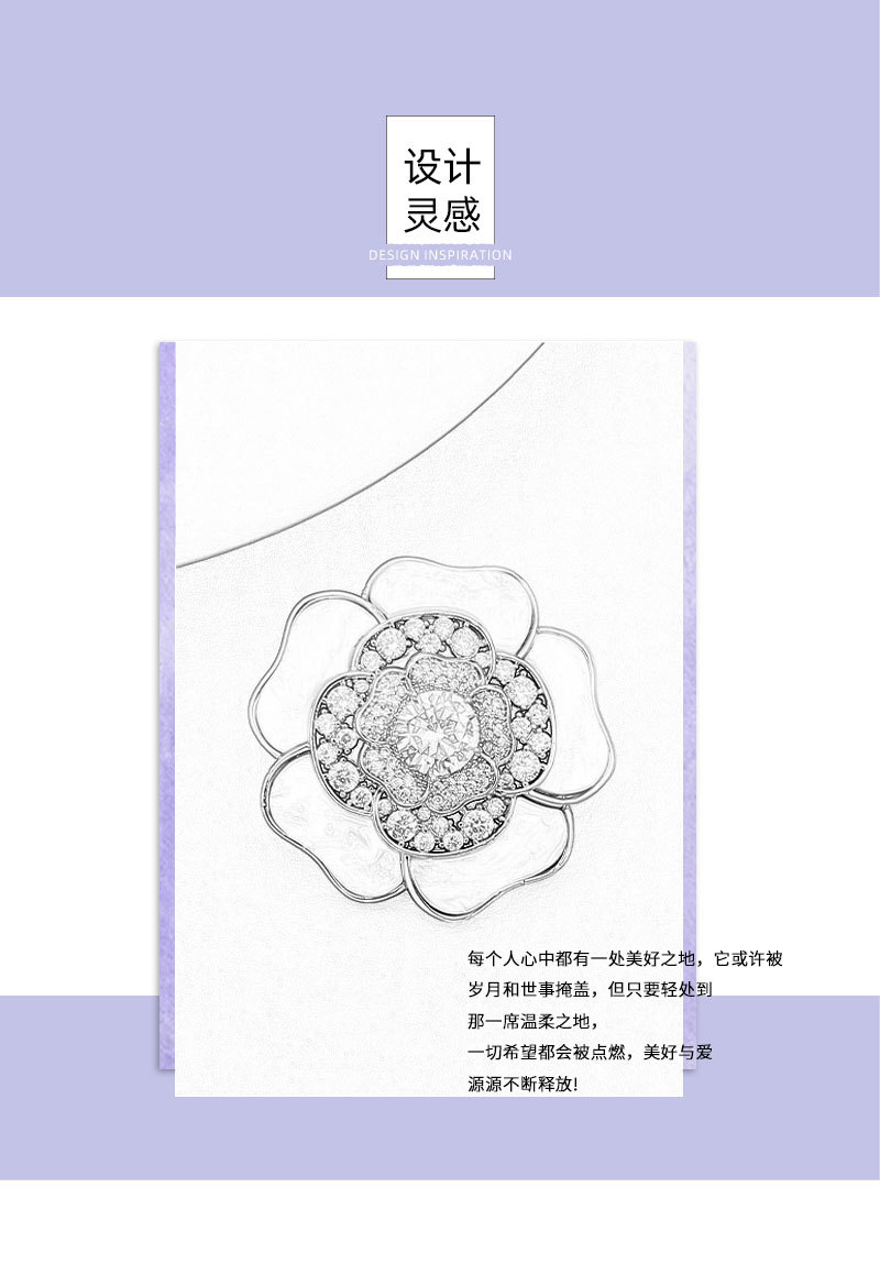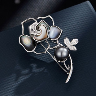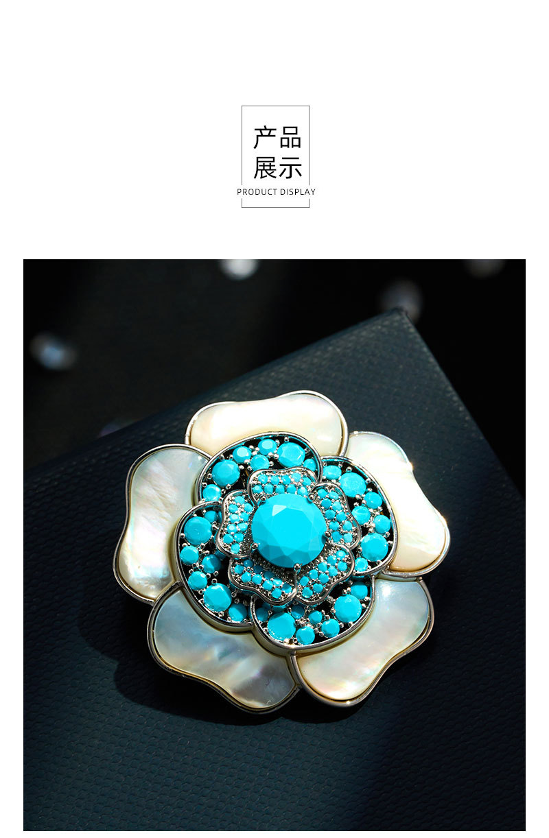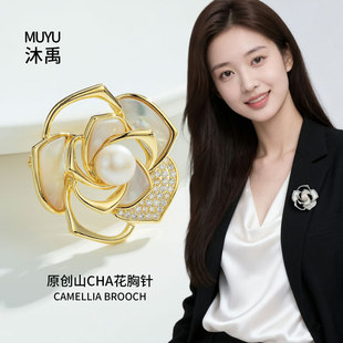 A light luxury and high-end natural mother-of-pearl camellia brooch, copper alloy slightly inlaid zircon, fashionable and versatile women's accessory pin