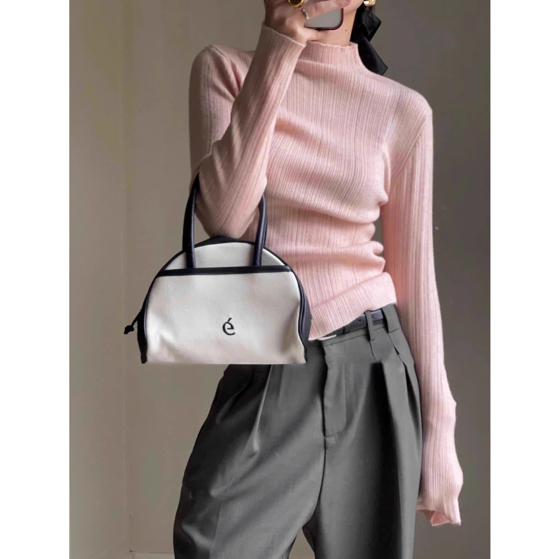 A light purple semi-high neck slim-fit innerwear with a knitted sweater for women in the spring of 2026 is a stylish and unique thin base layer