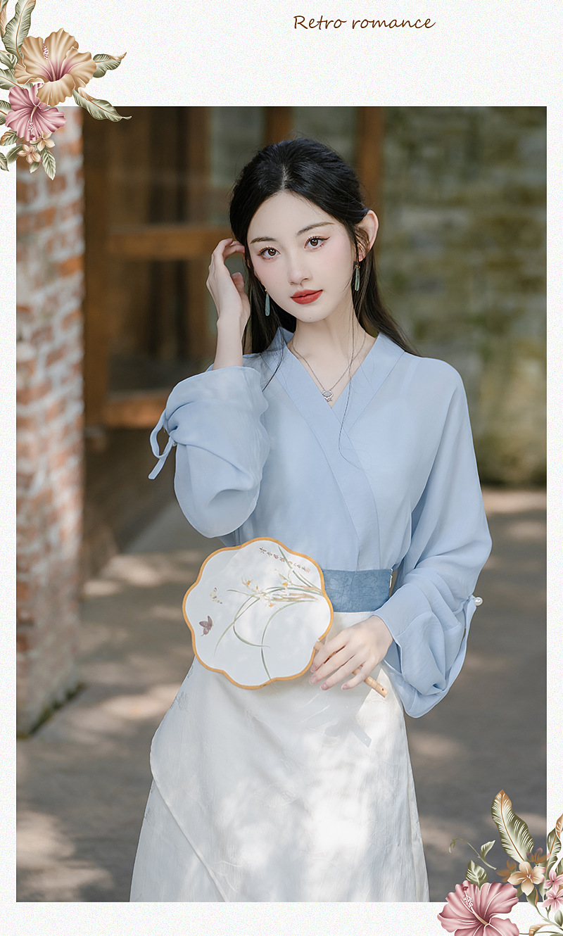 A modified Hanfu dress that can be worn to work, featuring super ethereal Han elements and a Chinese-style horse face dress set for women's daily wear