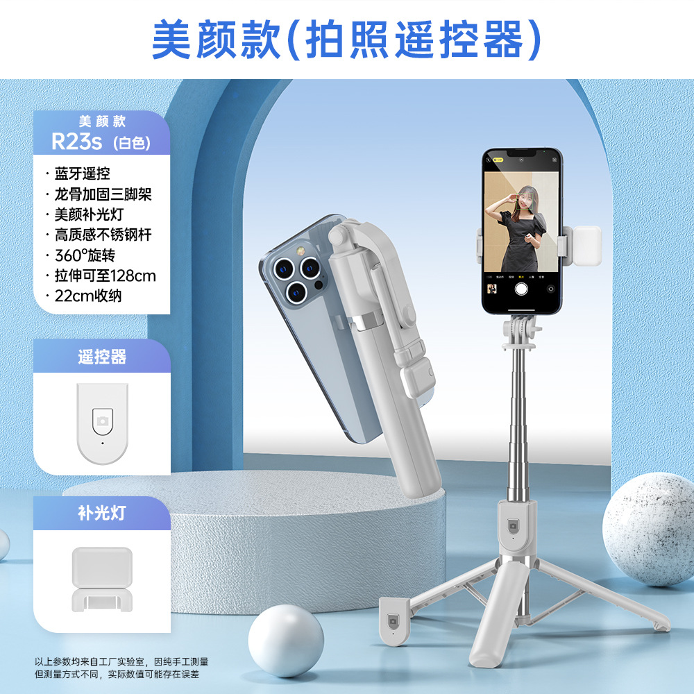 R23S-1.3m white selfie stick with light