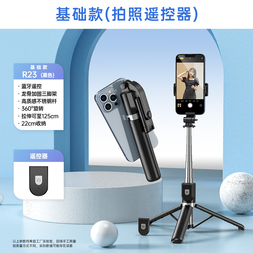 R23S-1.3m black selfie stick with light