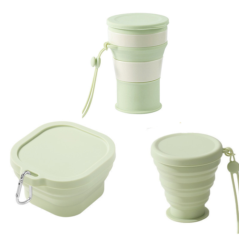 A must-have portable cup for outdoor travel and business trips, a small square silicone folding bowl, a portable three-piece set, lightweight, durable and environmentally friendly, made of silicone material