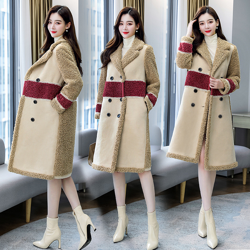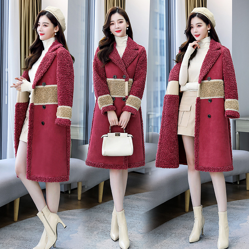 A new and fashionable Korean-style granular fleece and fur integrated woolen coat for women in winter