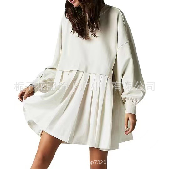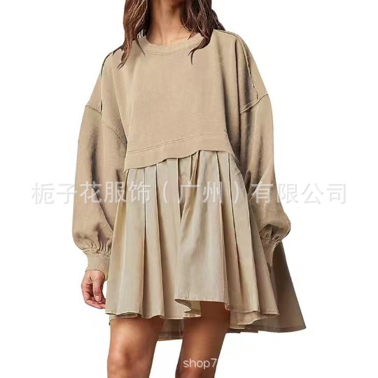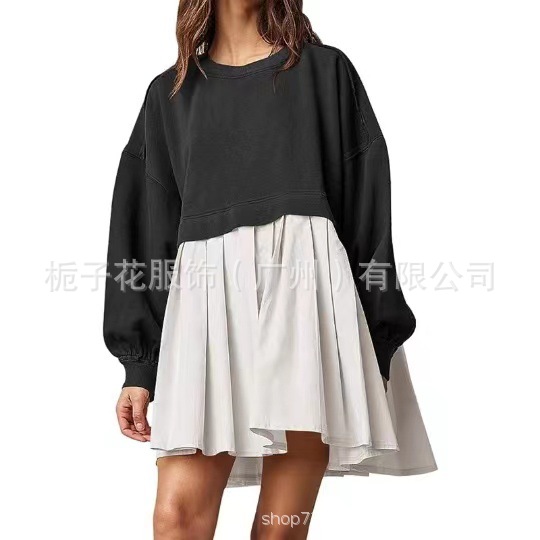 A new autumn and spring collection of European and American women's dress for cross-border women, featuring a fashionable and elegant solid color loose long-sleeved mid-length jumpsuit