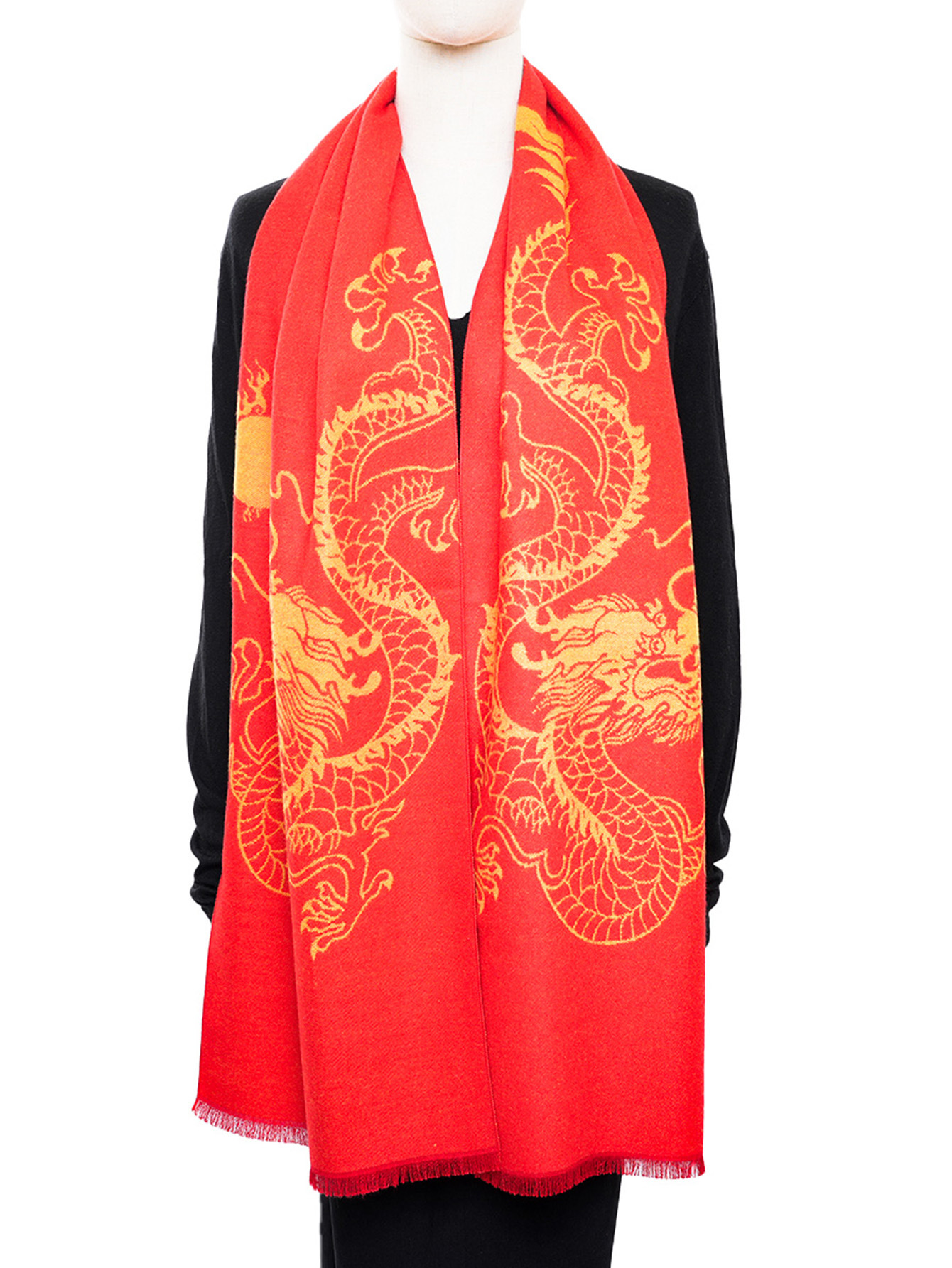 A new bright red New Year's scarf for the Year of the Dragon and the zodiac year is soft, warm and short. It is a gift scarf and shawl suitable for both men and women