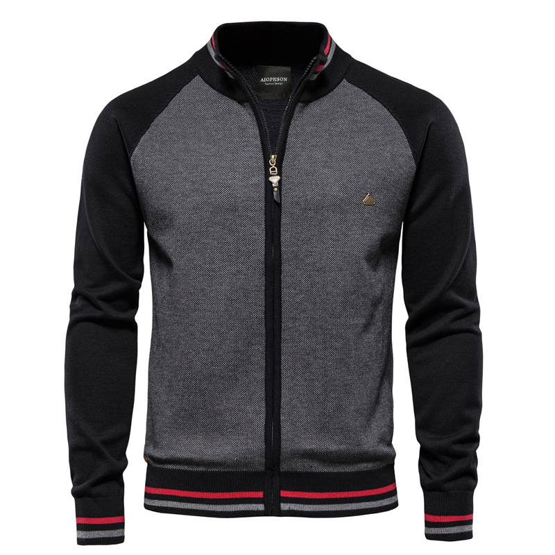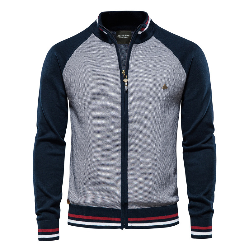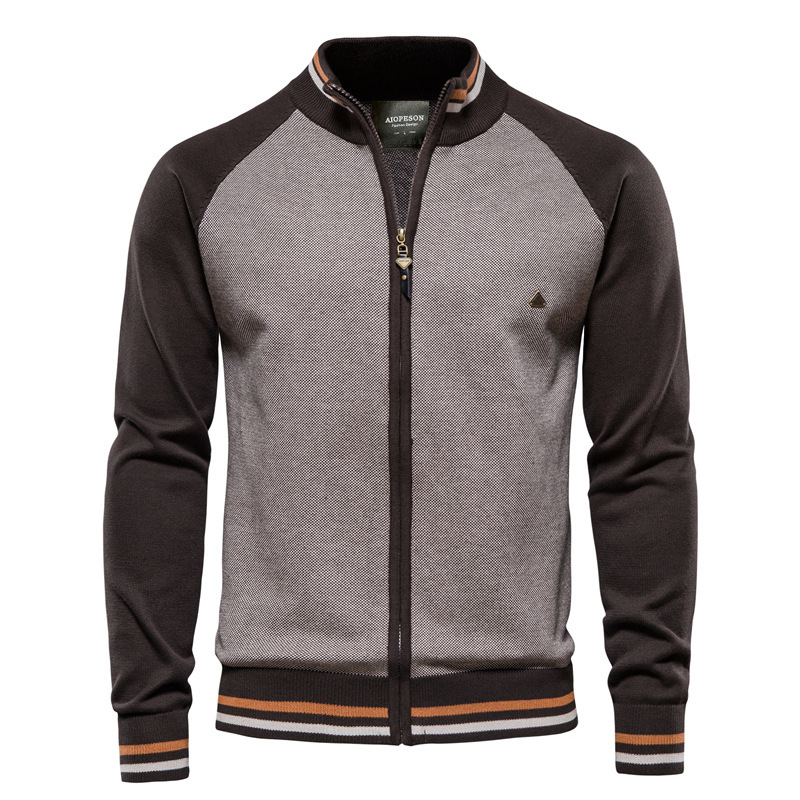 A new casual knitted sweater for men in the autumn of 2021, a fashionable and casual men's coat with a patchwork style