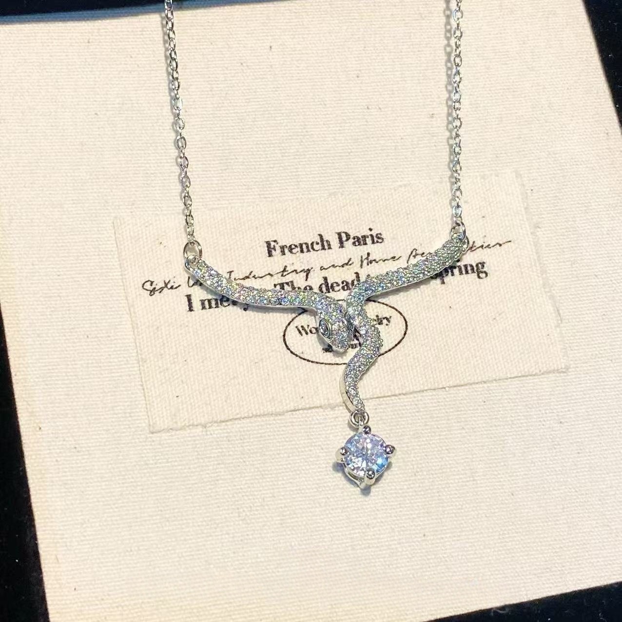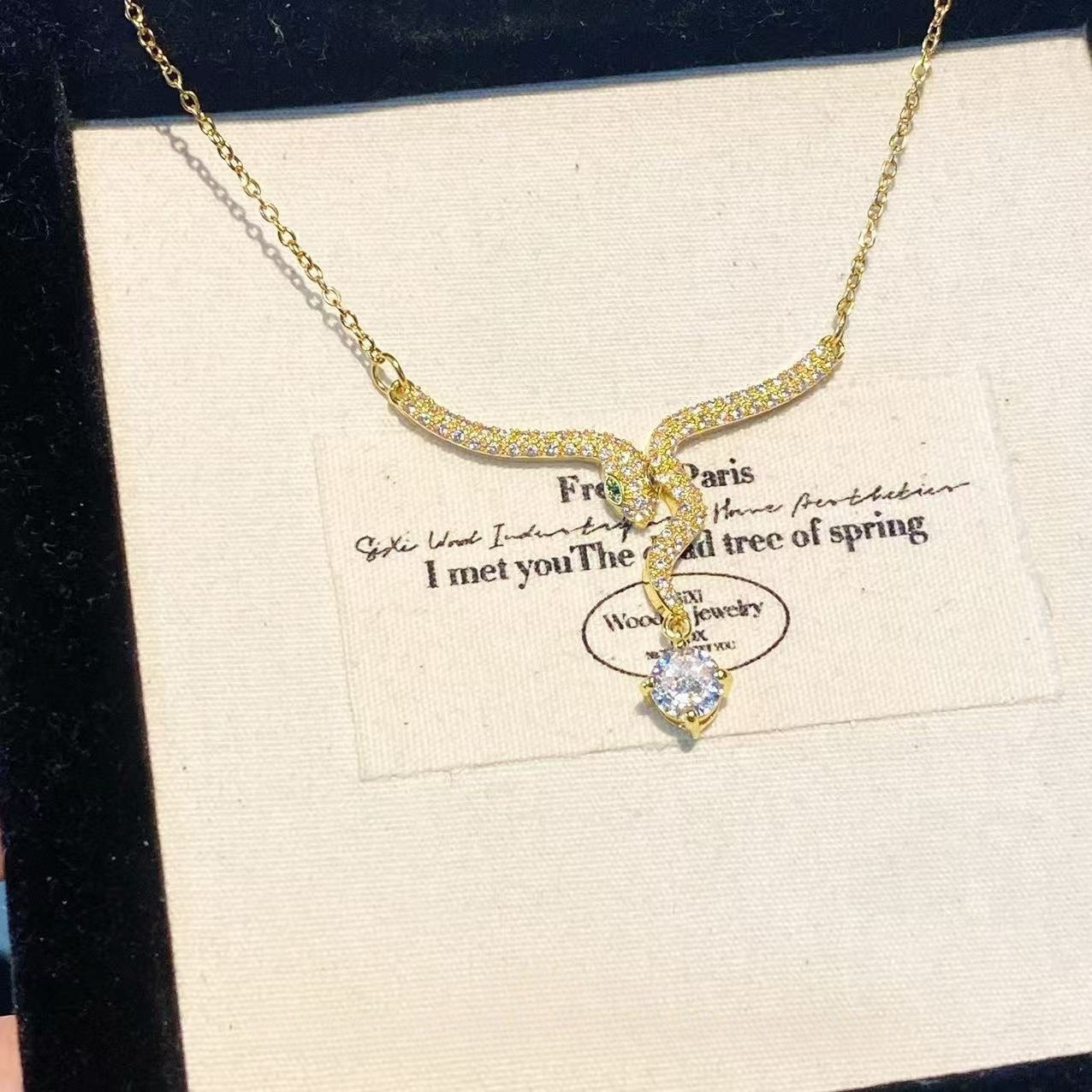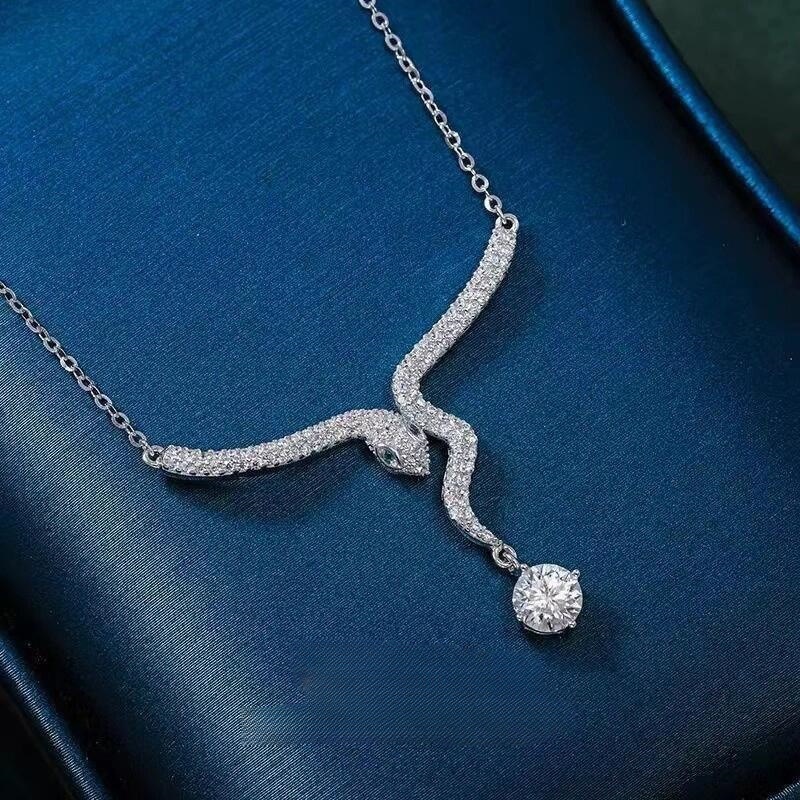 A new exquisite diamond-encrusted small spirit snake pendant necklace for the Year of the Snake. It is a high-end design pendant for women's zodiac year of the Snake