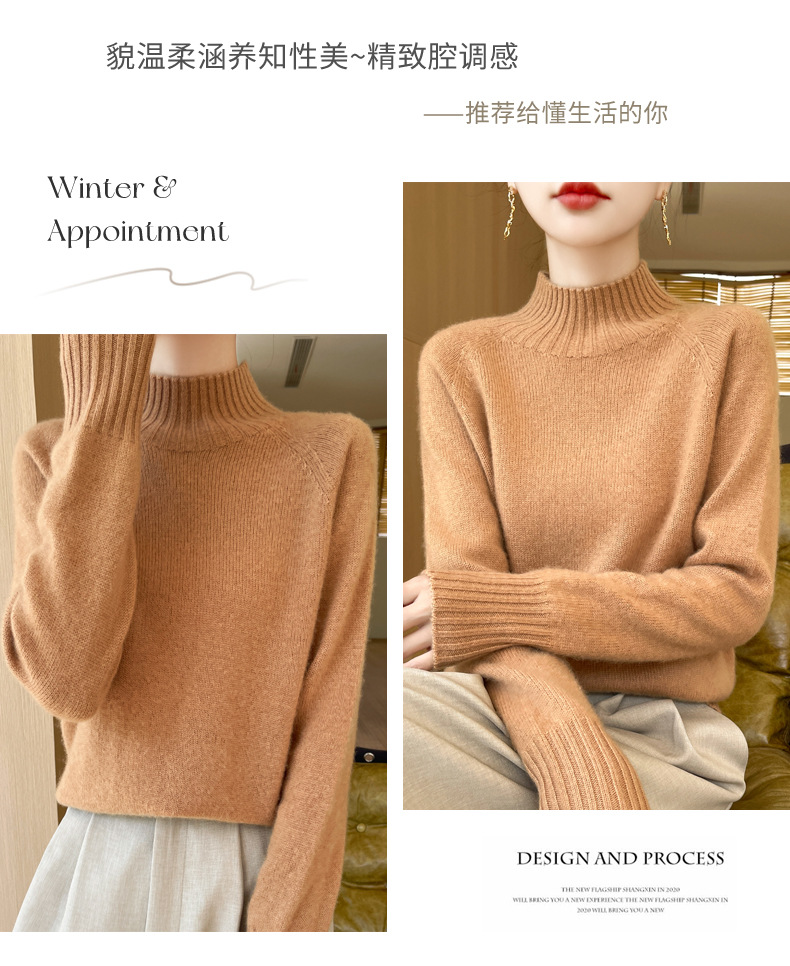 A new Korean-style women's ready-to-wear semi-high neck thick solid color long-sleeved pullover commuting casual simple knitted sweater