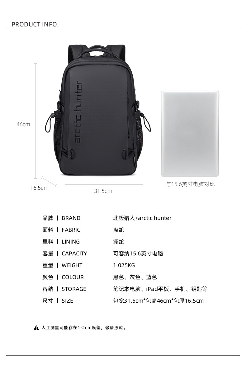 A new large-capacity backpack for men's sports and leisure, water-resistant, and daily commuting 15.6-inch laptop backpack