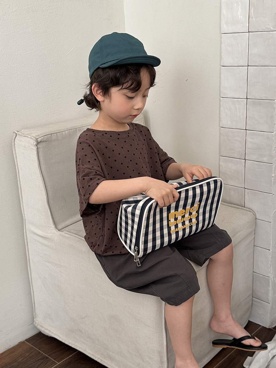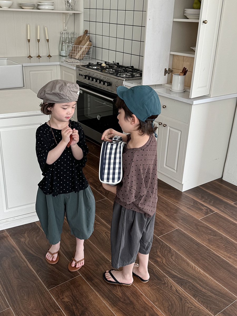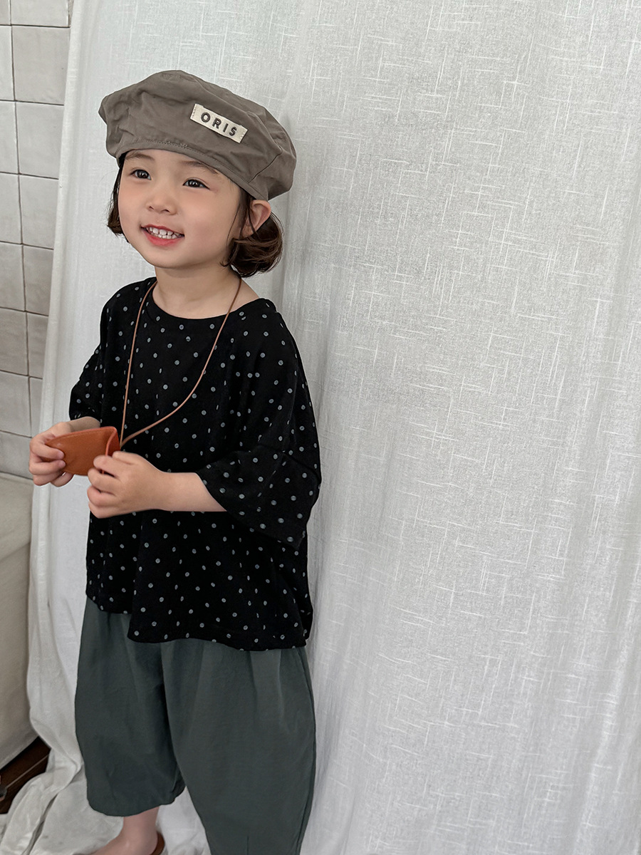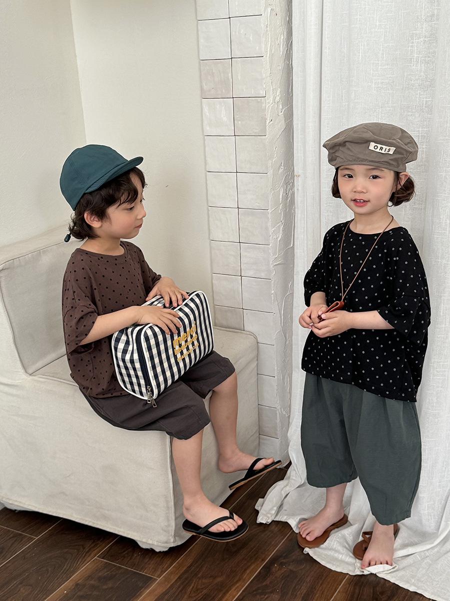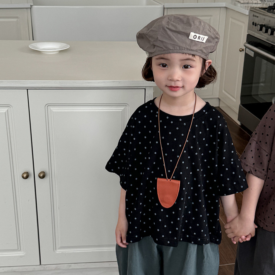 A new polka dot short-sleeved T-shirt for children's summer 2025, featuring a simple forest-themed half-sleeved top for kids