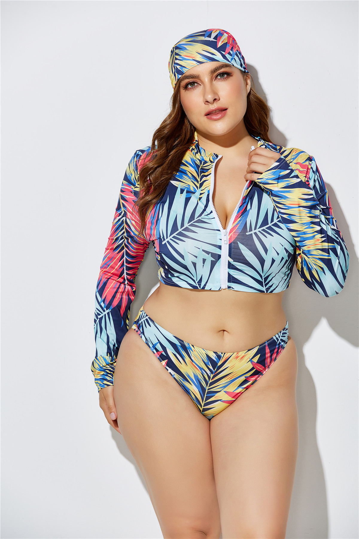 A new sexy printed bikini, plus-size, two-piece swimsuit set with a head and waist tie and a triangular scarf from Europe and America