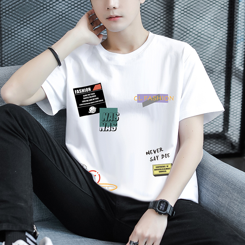 A new summer collection of pure cotton short-sleeved T-shirts for men's fashion brand, featuring trendy half-sleeved shirts for teenagers and junior high school students