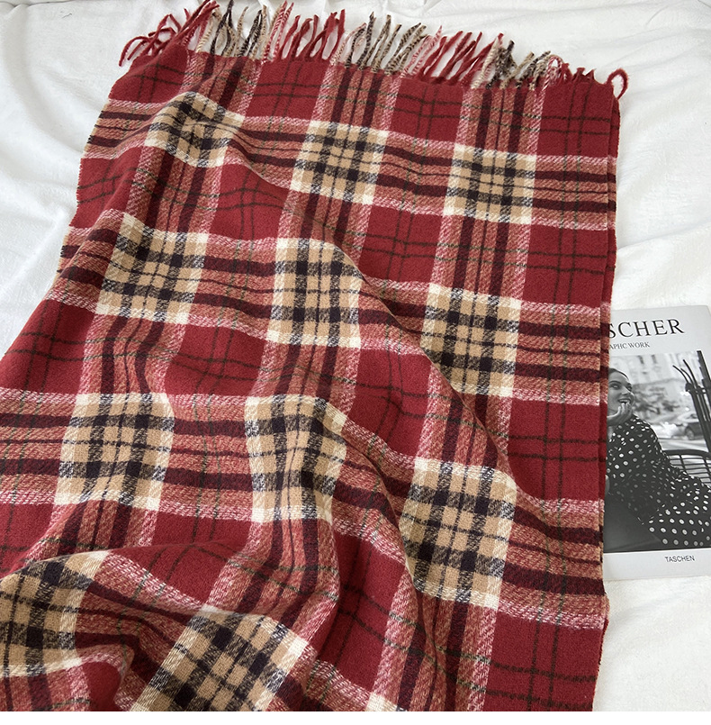 A new thickened and warm fringed shawl for women's winter 2025, faux cashmere, retro and versatile, student and couple scarves, wholesale from street stalls