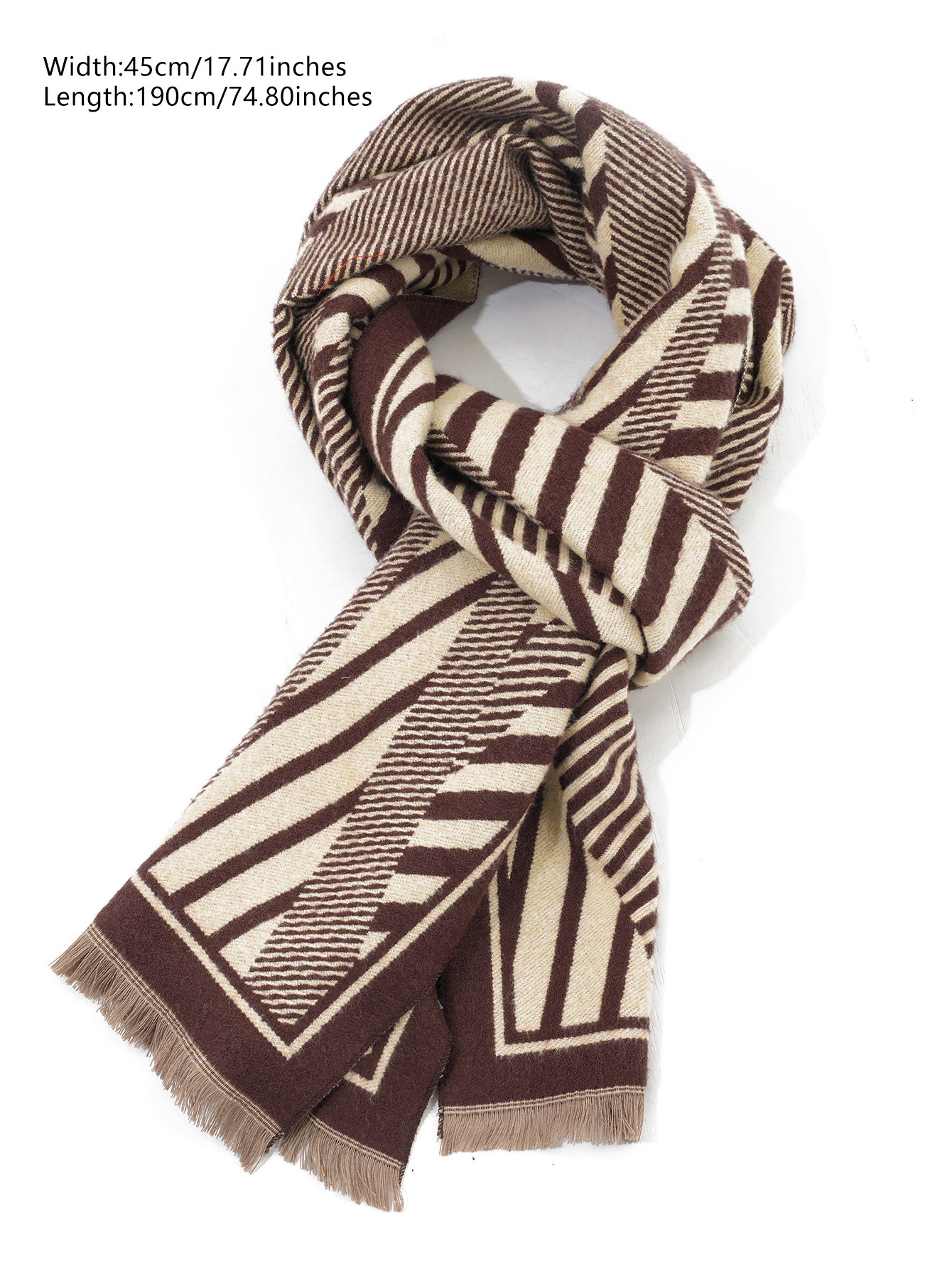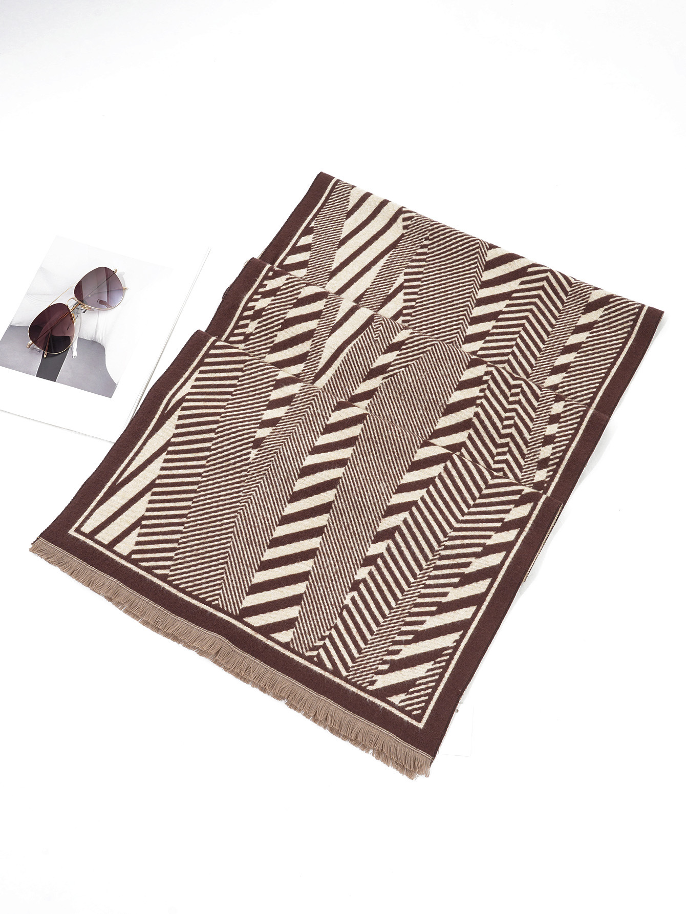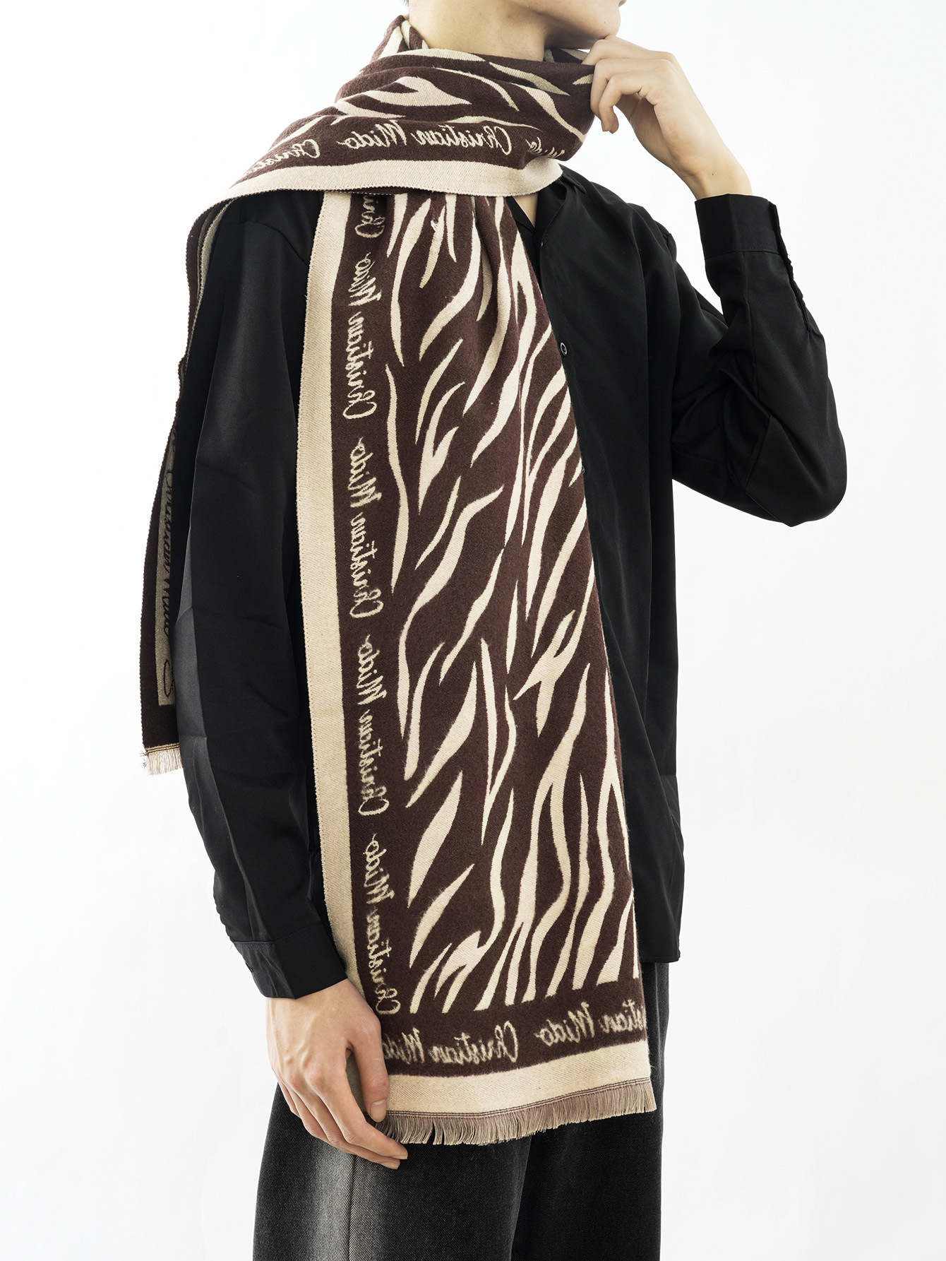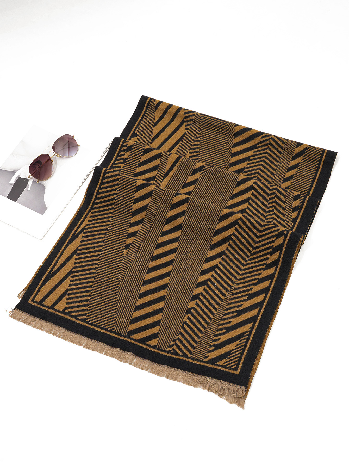 A new thickened zebra-patterned jacquard cashmere high-end and trendy short beard men's scarf and shawl for the autumn and winter of 2023