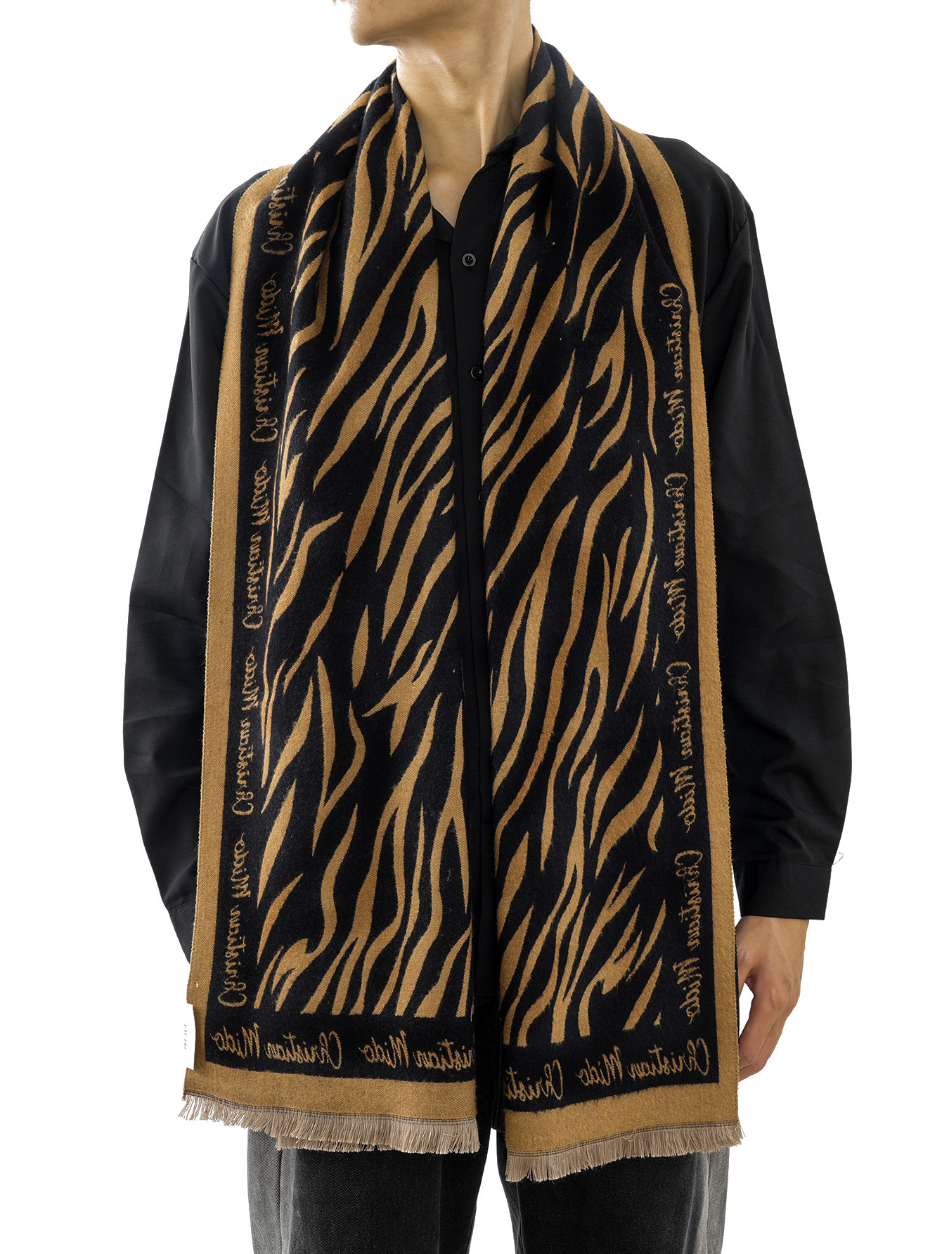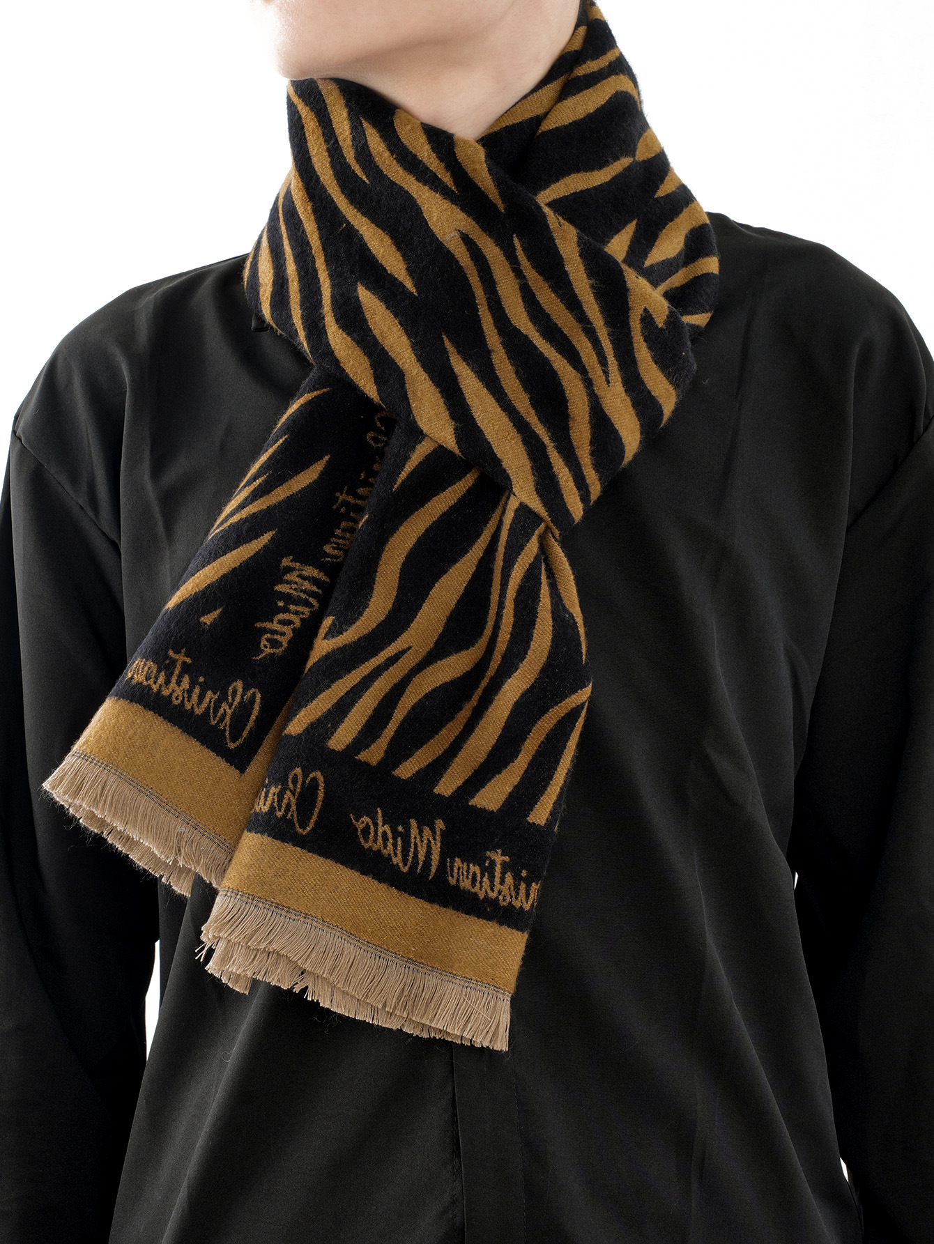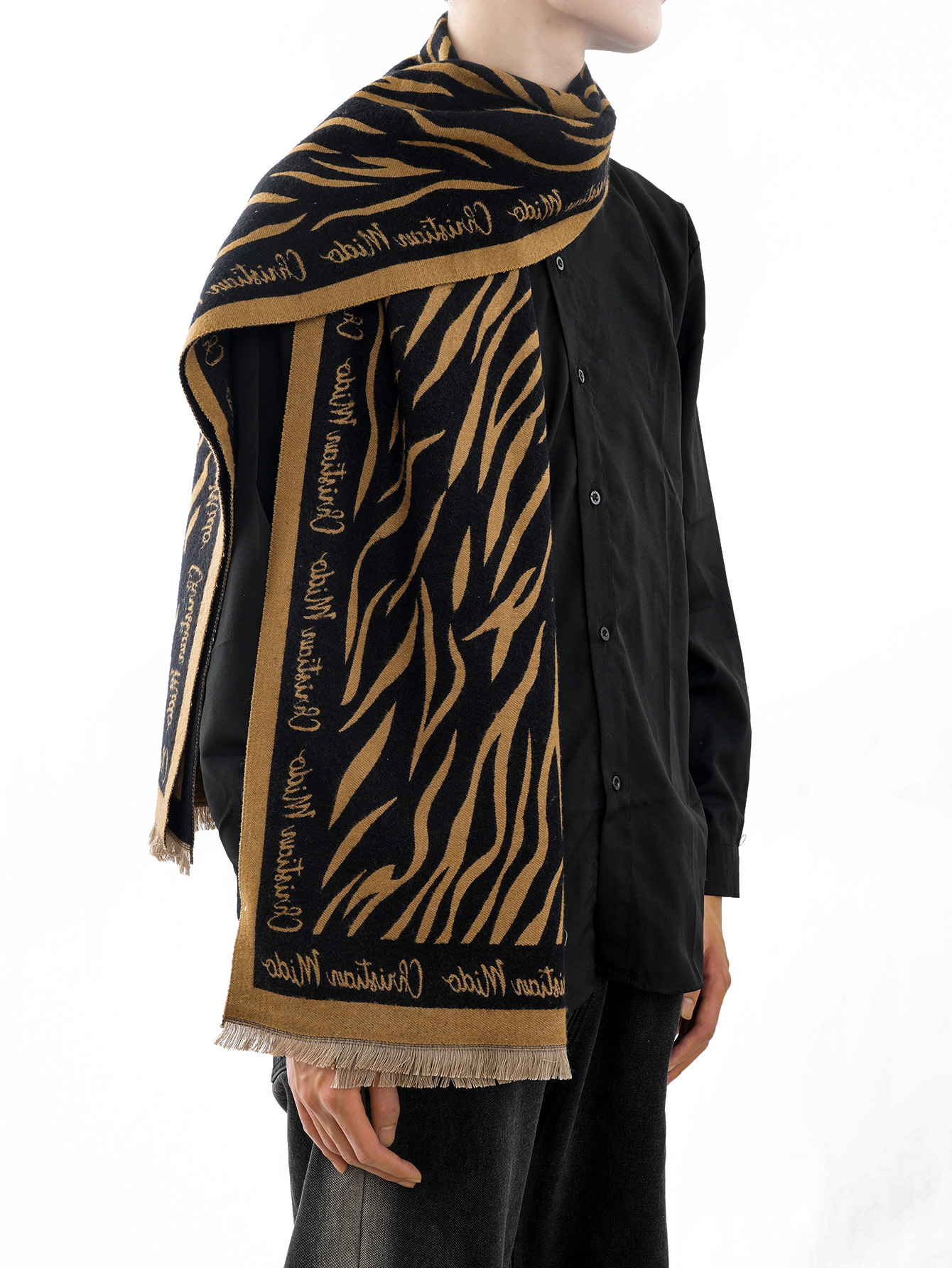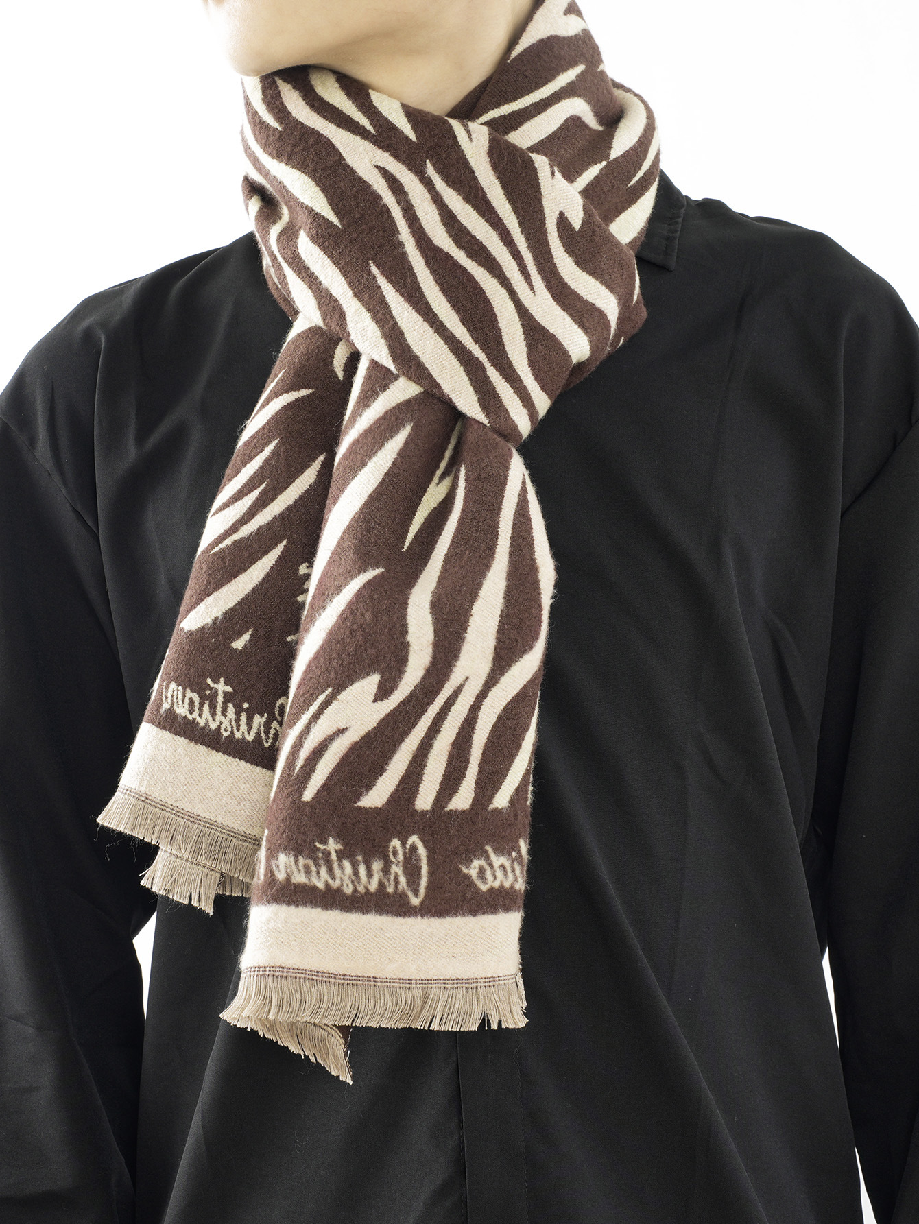 A new thickened zebra-patterned jacquard cashmere high-end and trendy short beard men's scarf and shawl for the autumn and winter of 2023