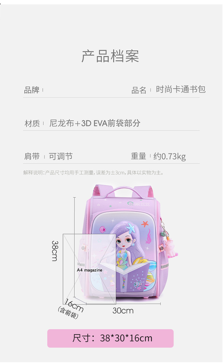 Kindergarten schoolbags for boys and babies, cartoon backpacks for middle and senior class students, and unicorn children's backpacks for grades 1-3