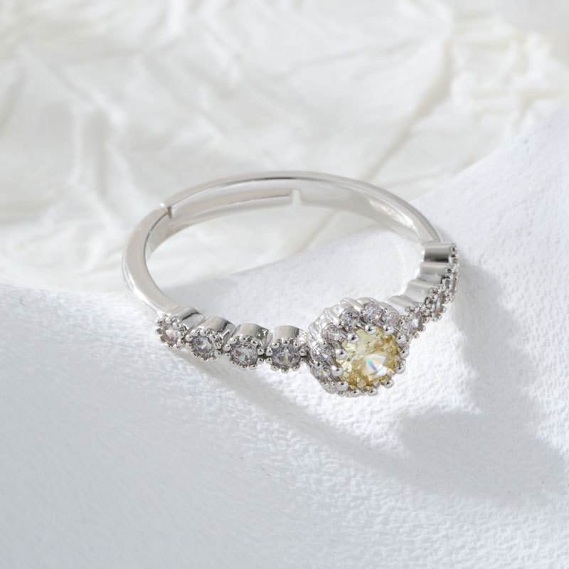 A niche and high-end round zircon open ring with adjustable colors in pink, yellow and white, a fashionable and versatile index finger ring
