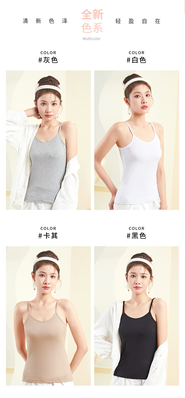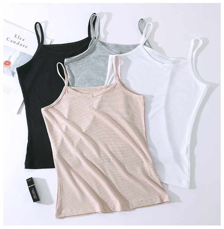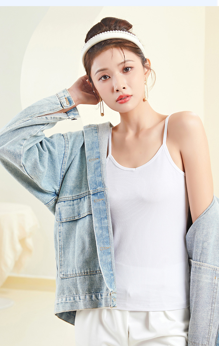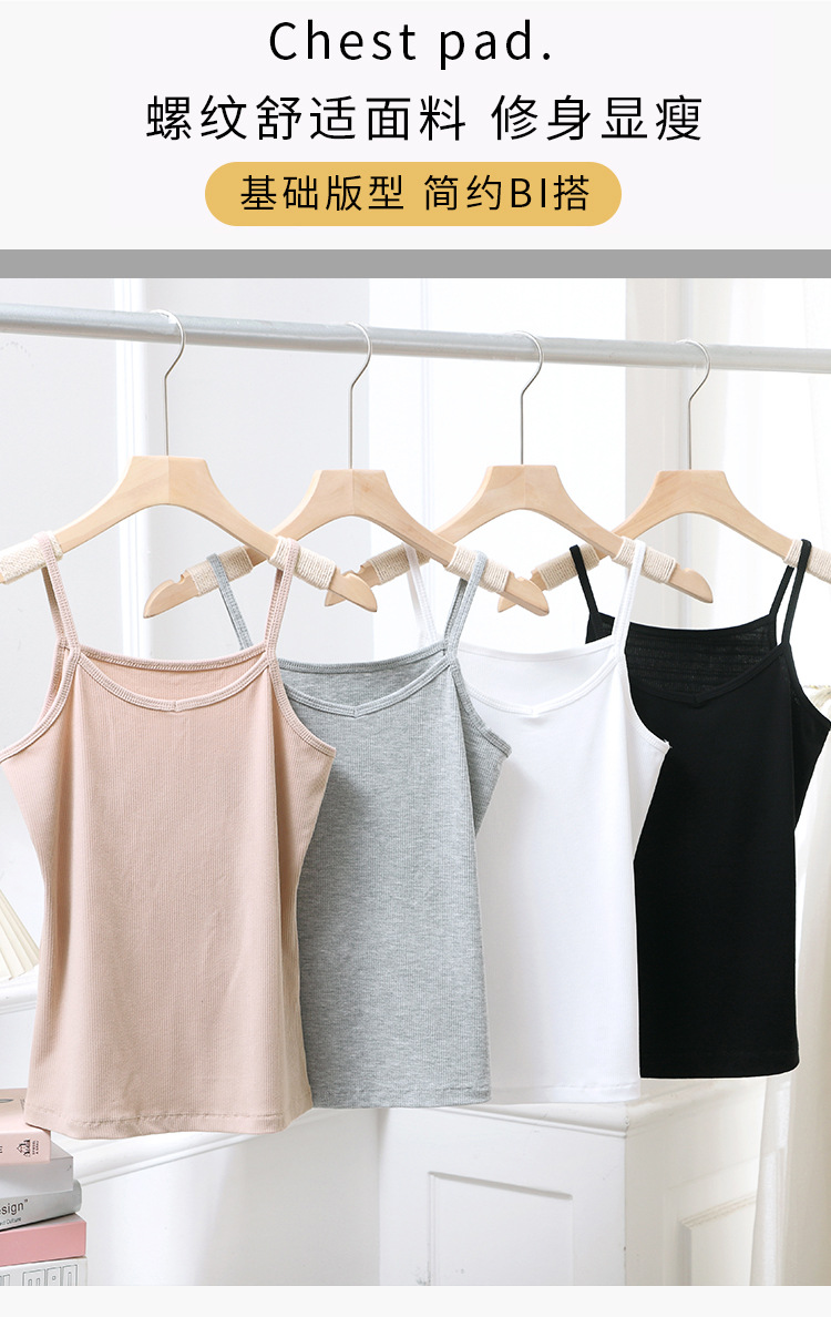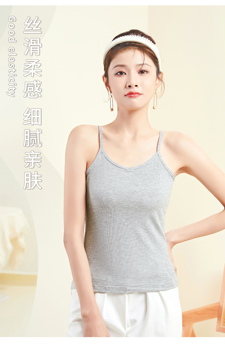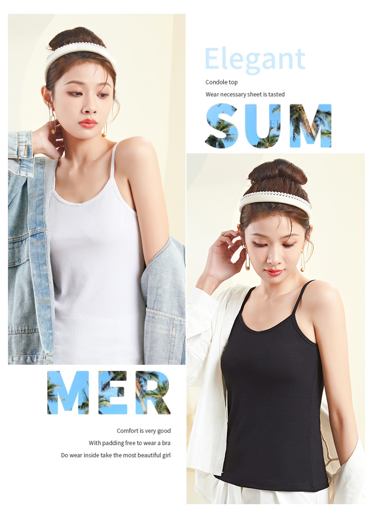 A plus-size women's halter top with a threaded V-neck and a slimming design. It is a white spring and summer base layer made of cotton
