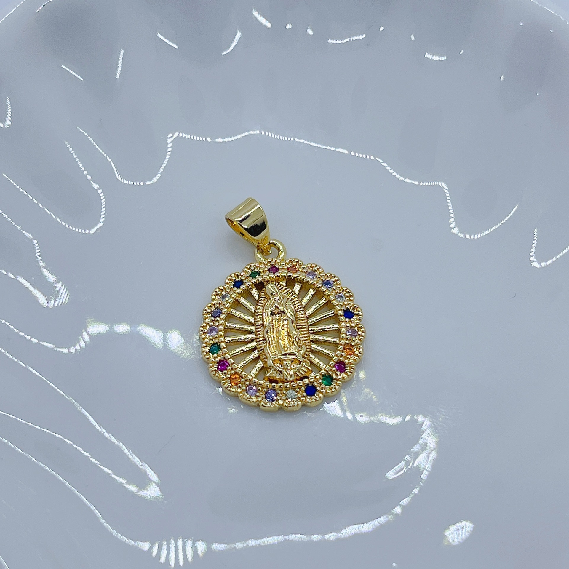 A popular female religious accessory in Europe and America, a copper micro-inlaid colored zircon Virgin Mary DIY pendant accessory