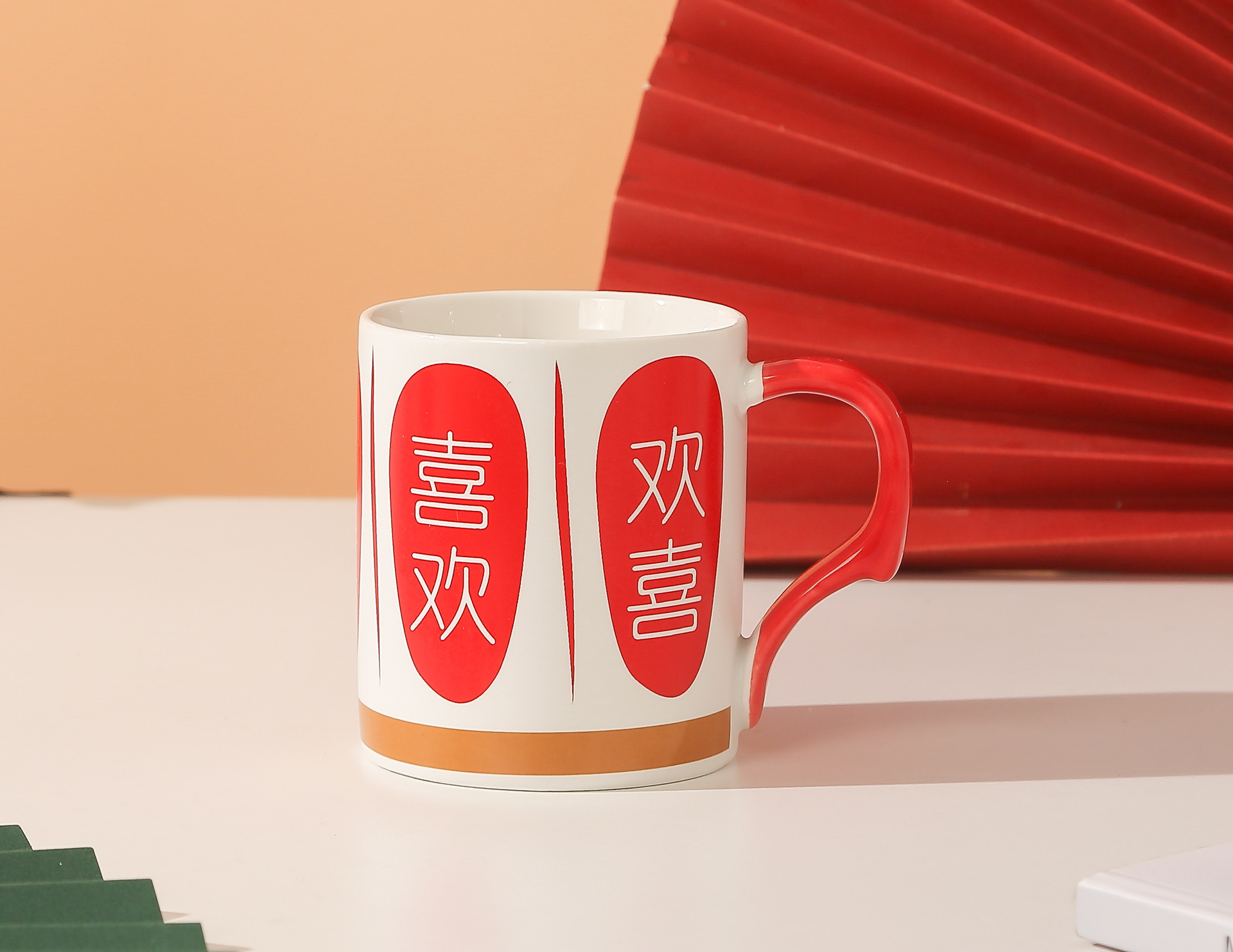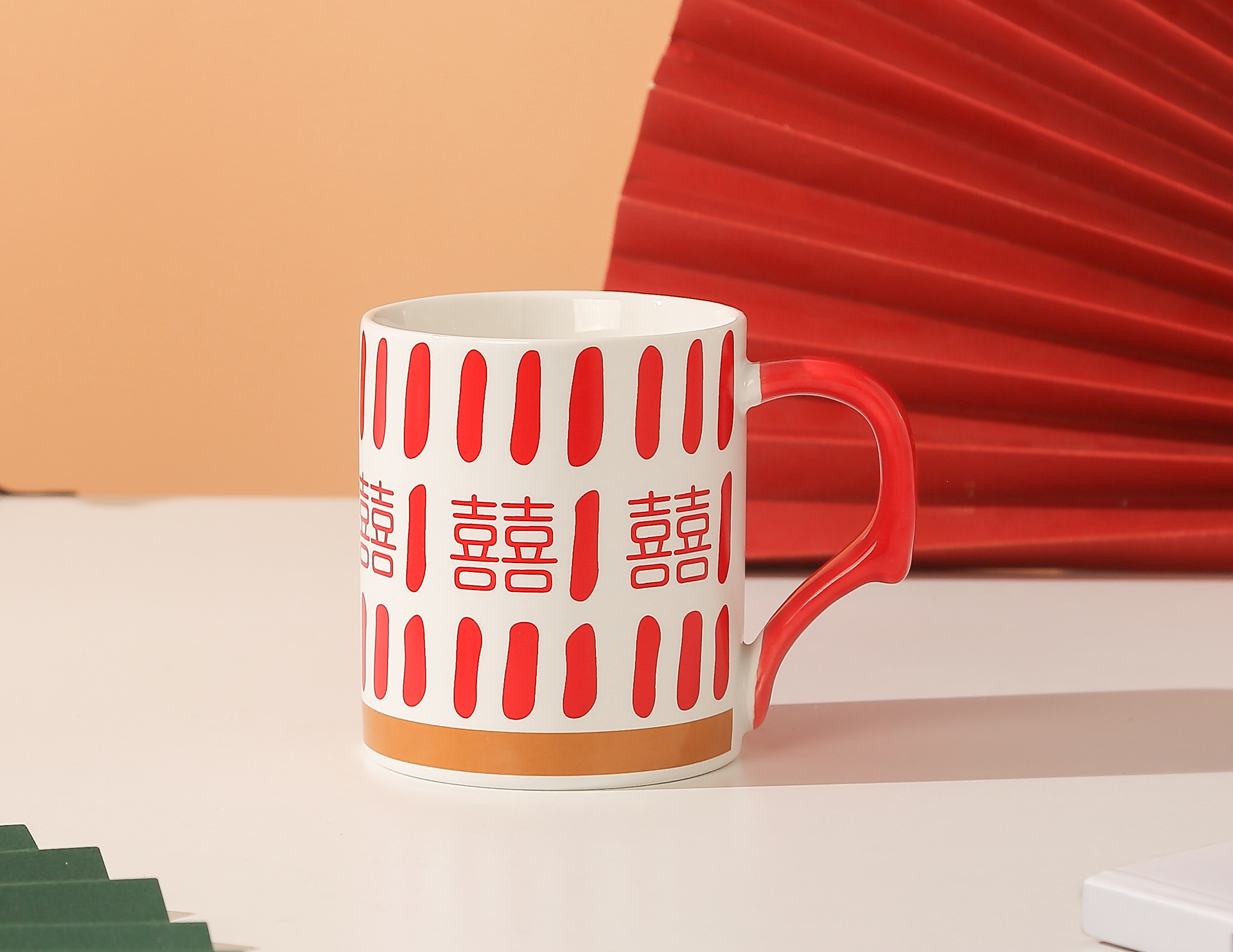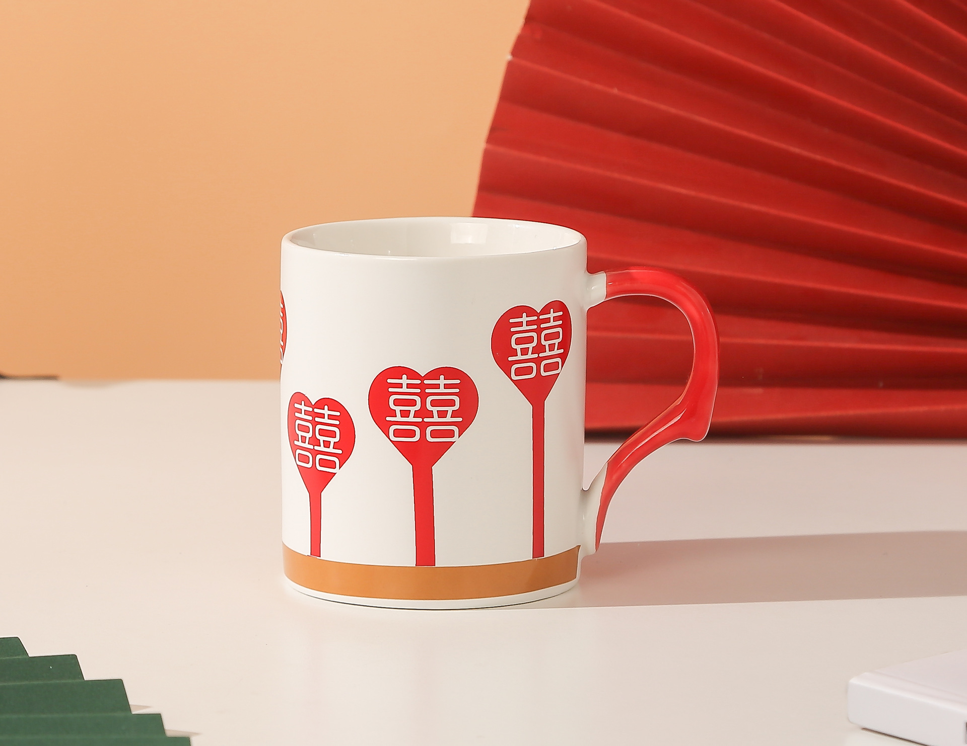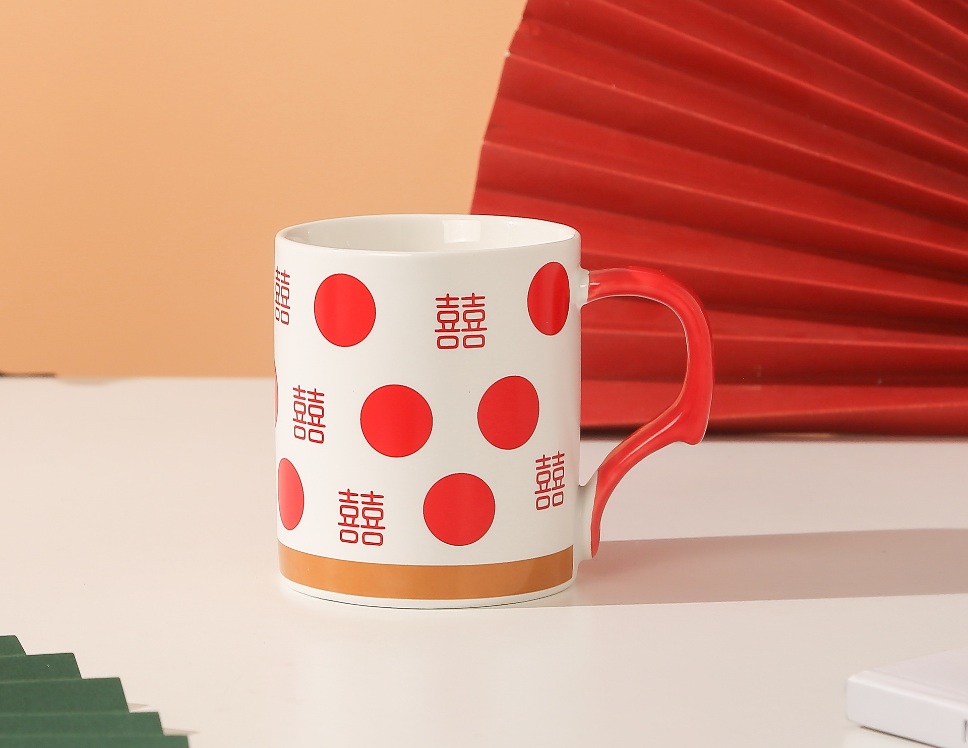 A retro, high-appeal, red, festive, "Xi" character ceramic mug for wedding gifts