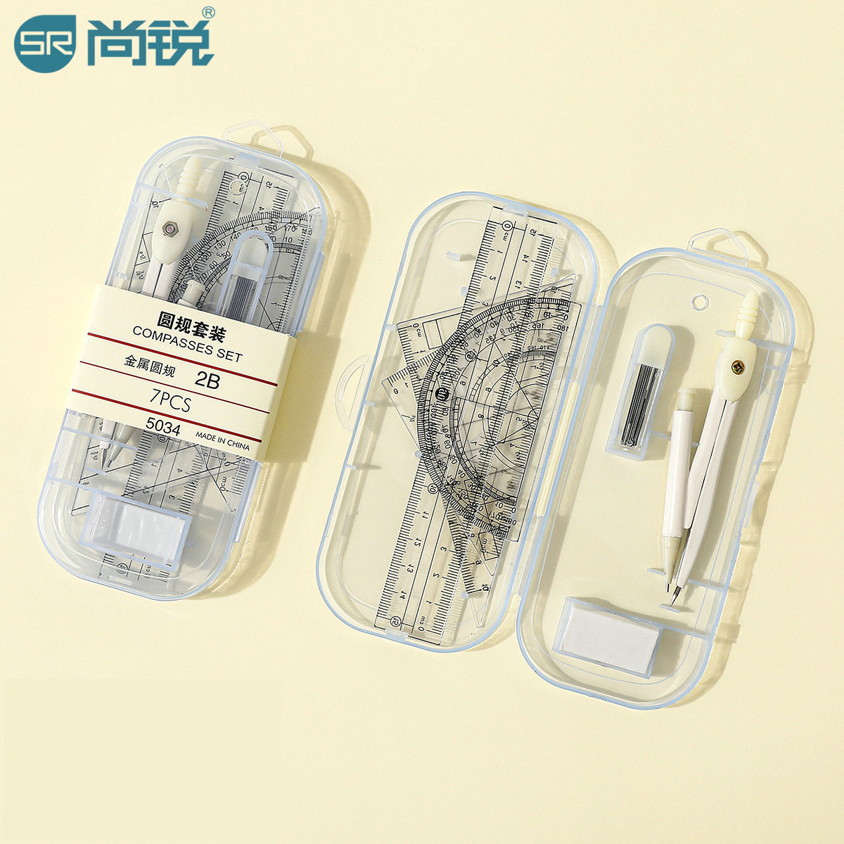 A seven-piece metal set of student drawing tools with a minimalist style, providing metal compasses for students' learning