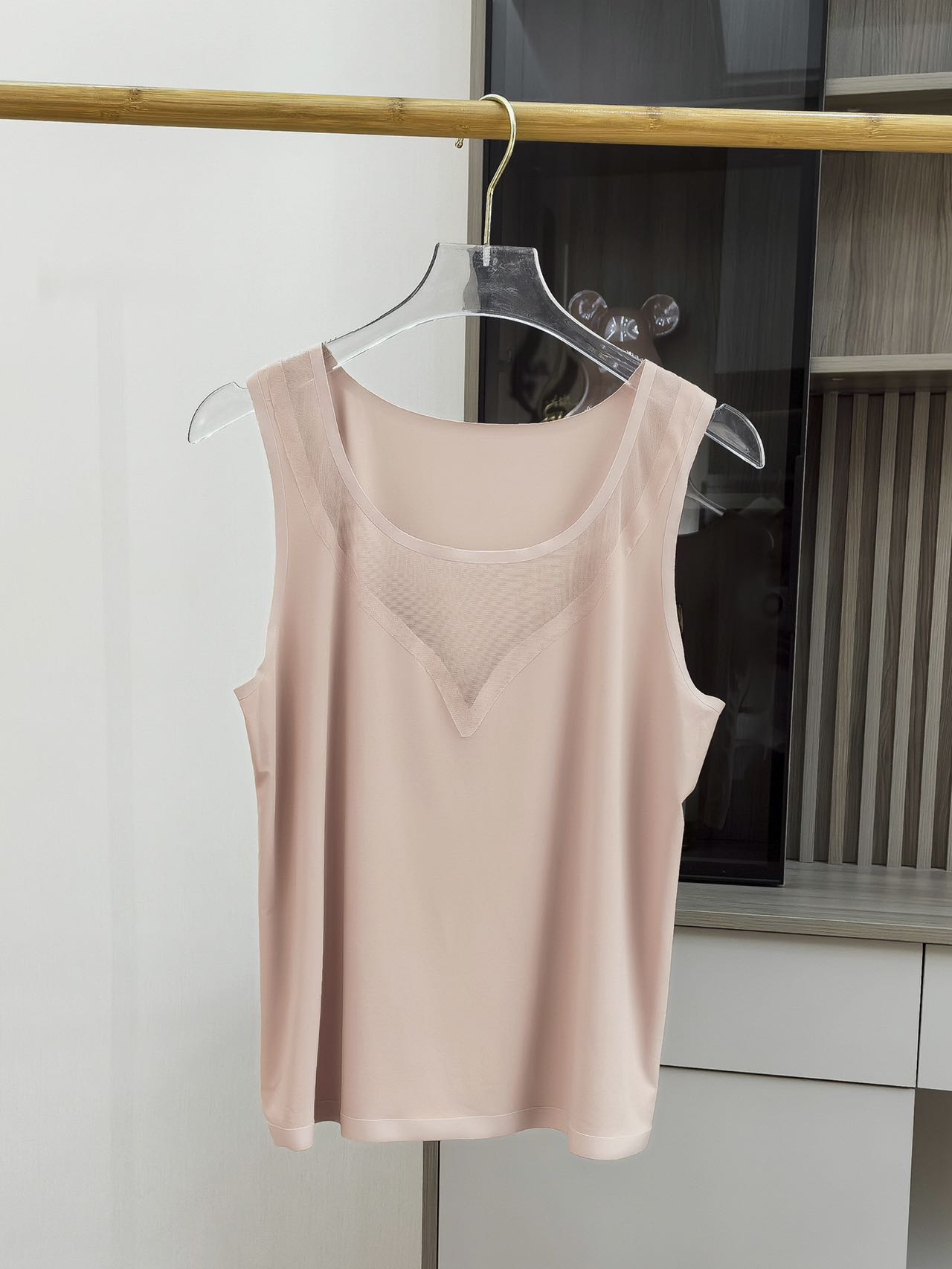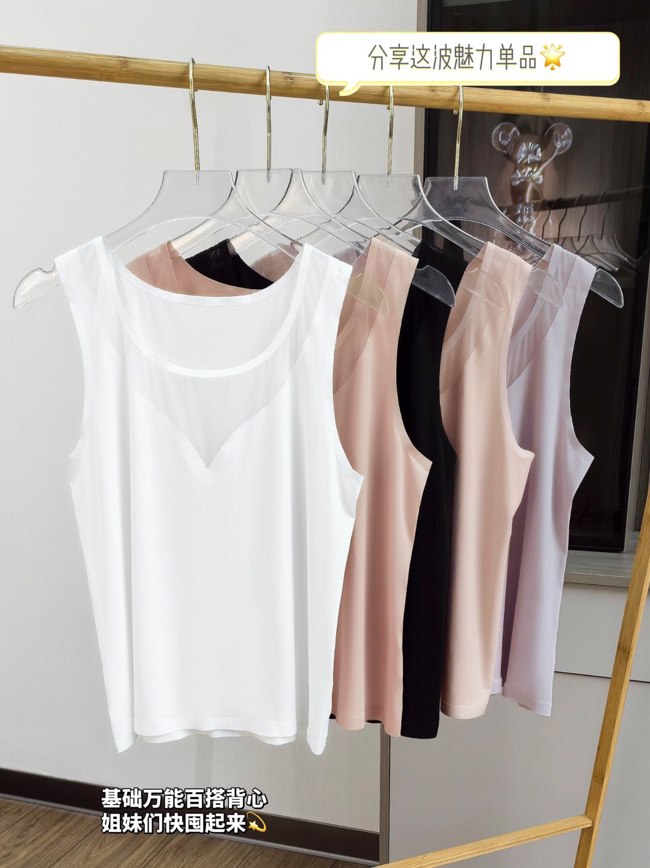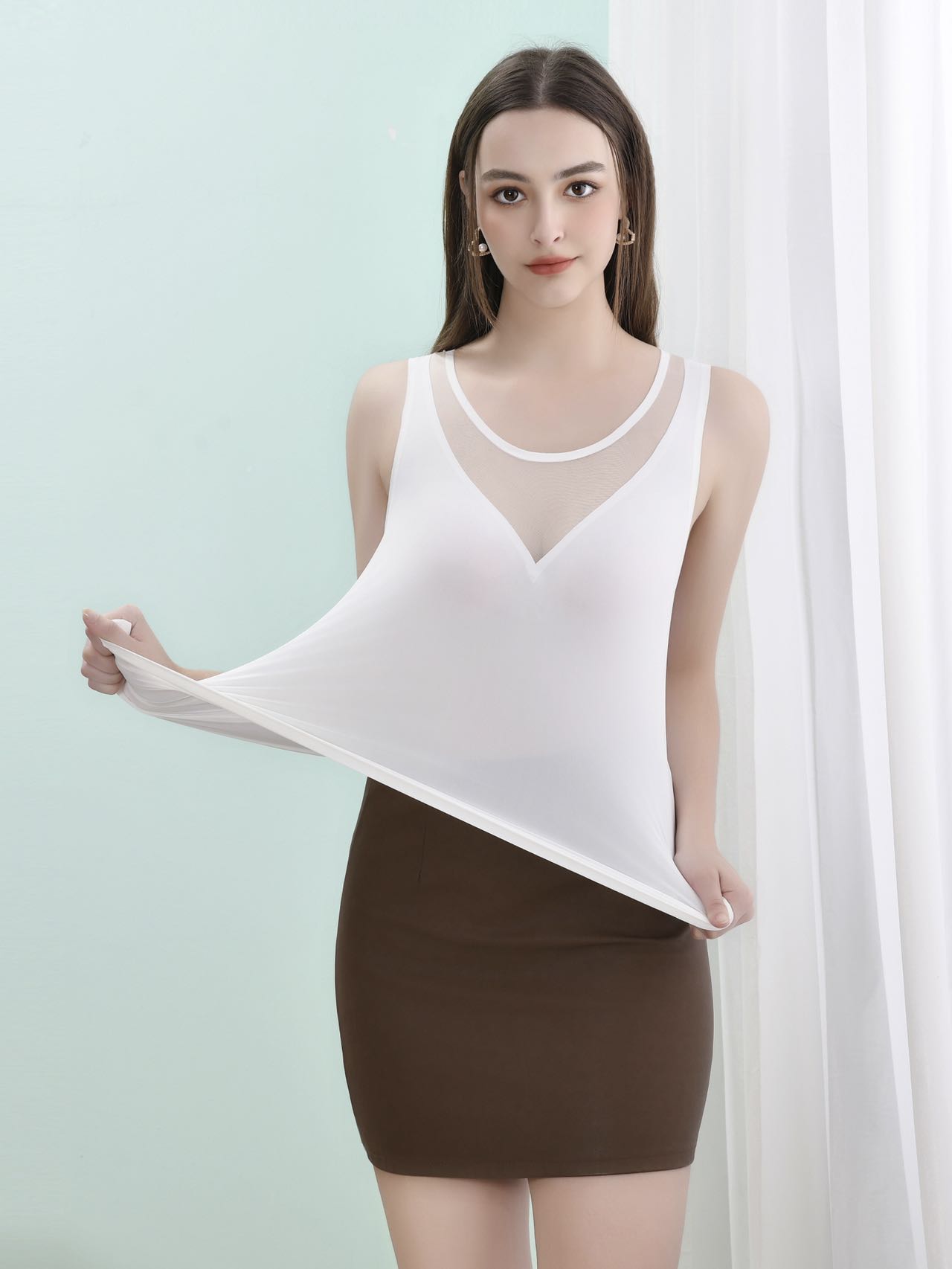 A sexy round-neck, cut-out mesh fabric, seamless one-piece, smooth and cool, ice-silk, comfortable and breathable base layer