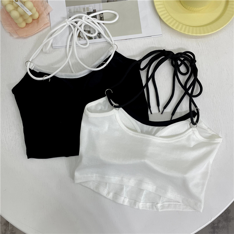 A short, irregularly laced sweet and spicy base top with a strappy vest design for women