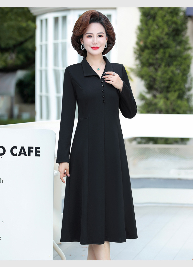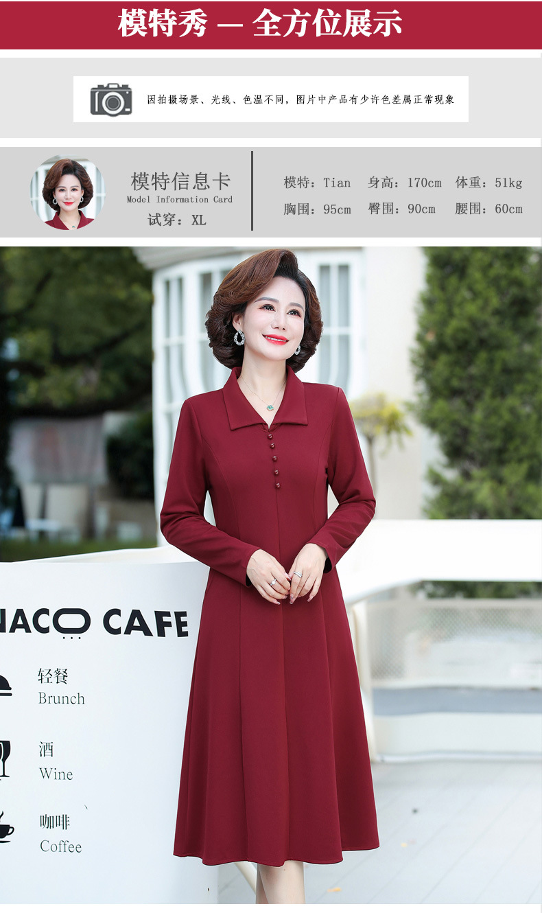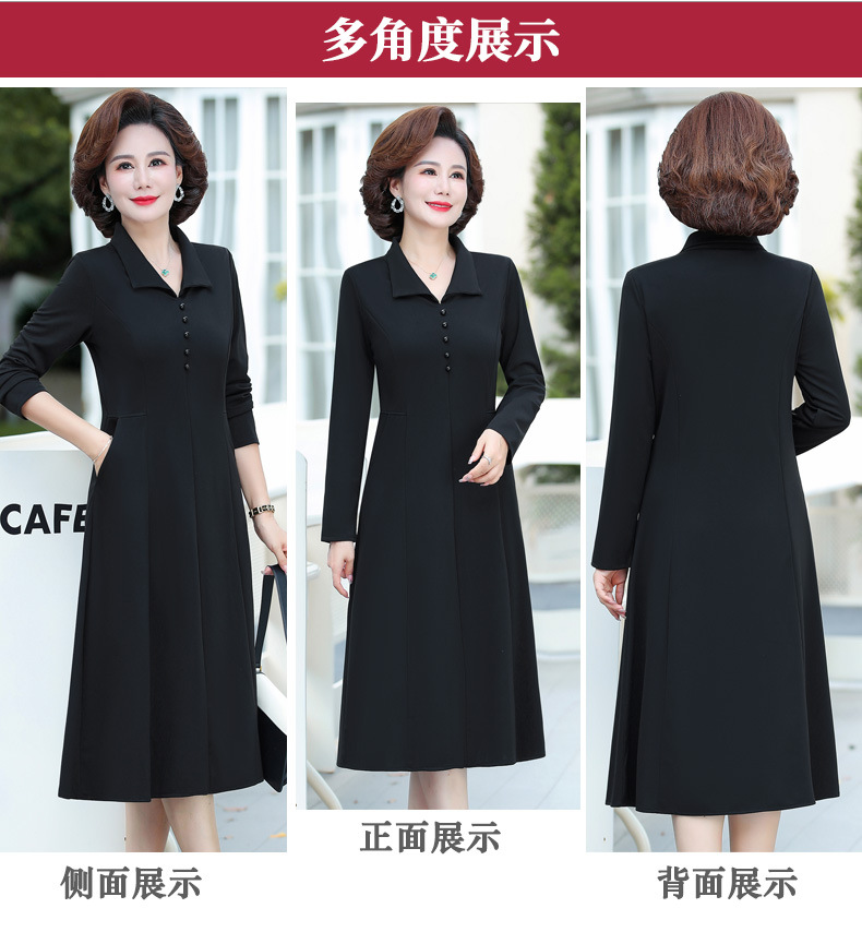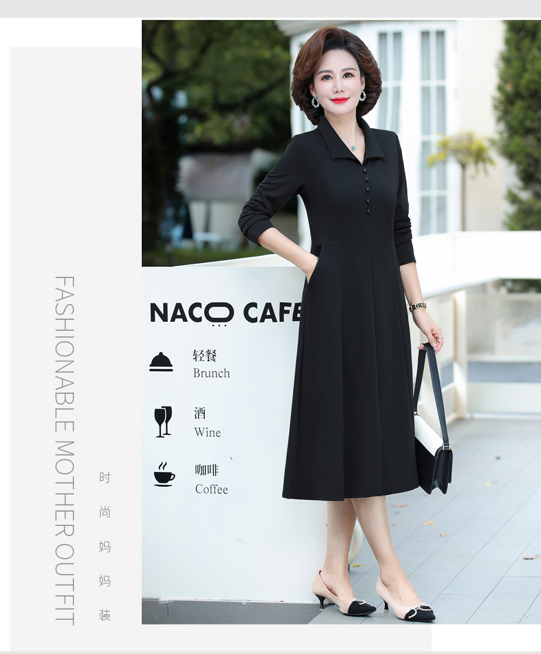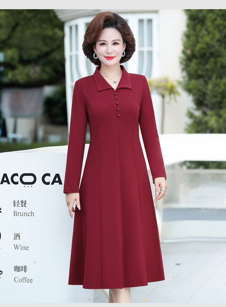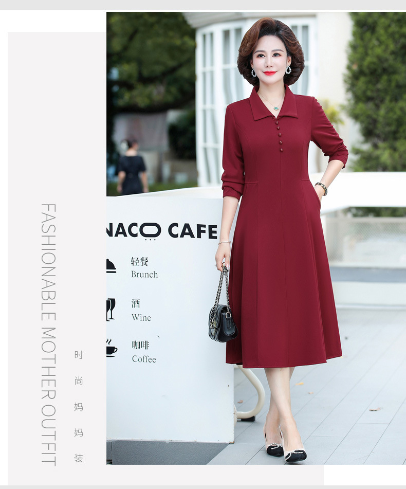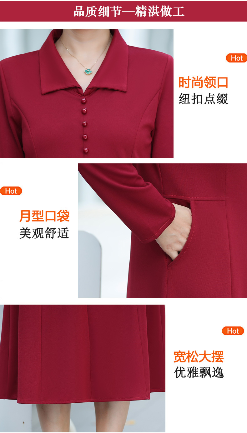 A simple, solid color lapel pullover long-sleeved women's dress for the elderly in autumn, which can be delivered on behalf of the mother