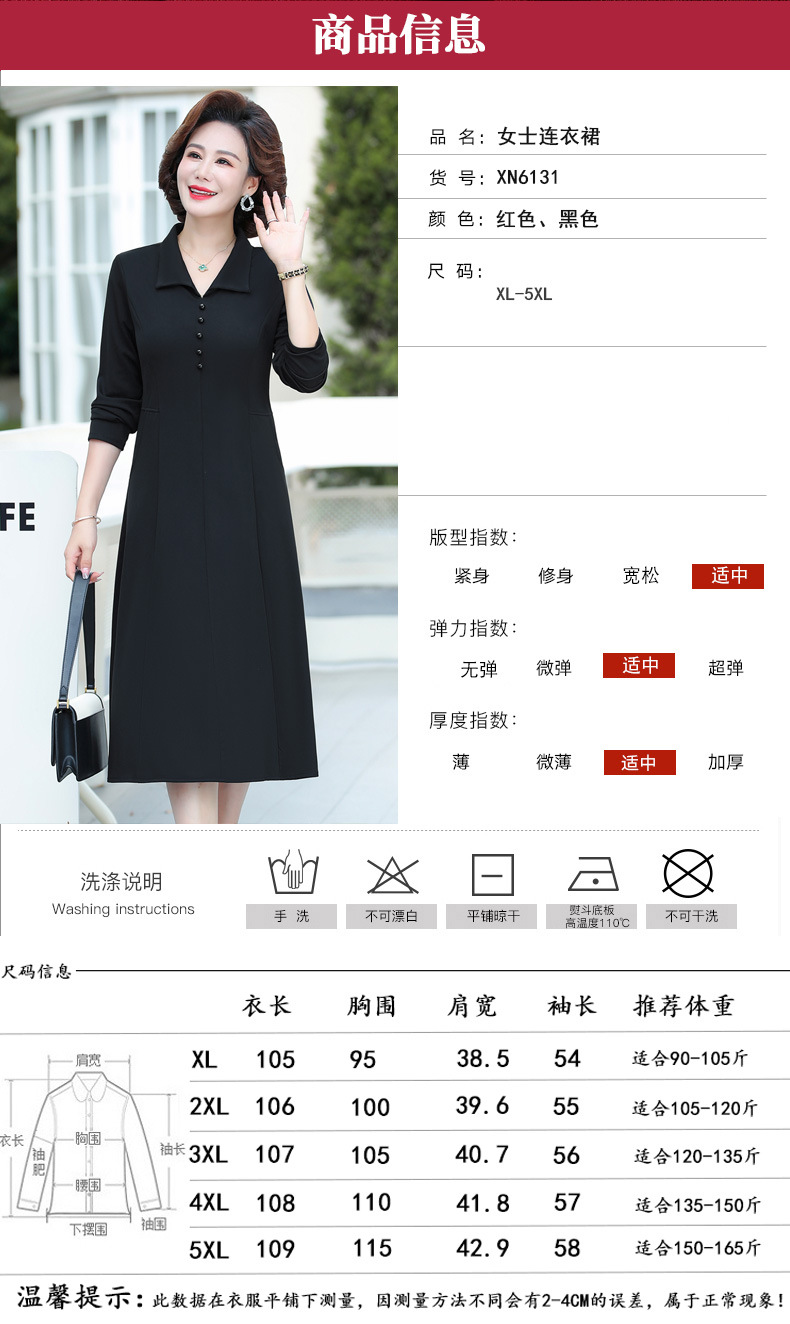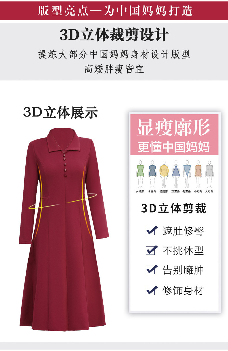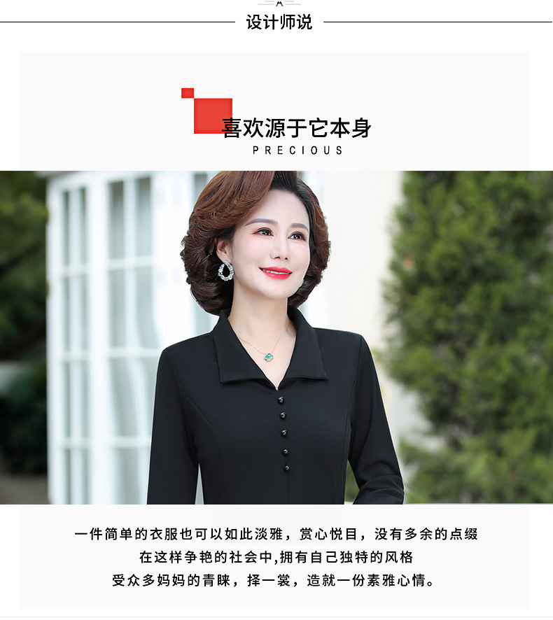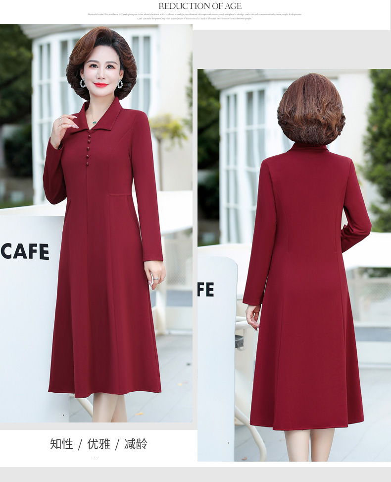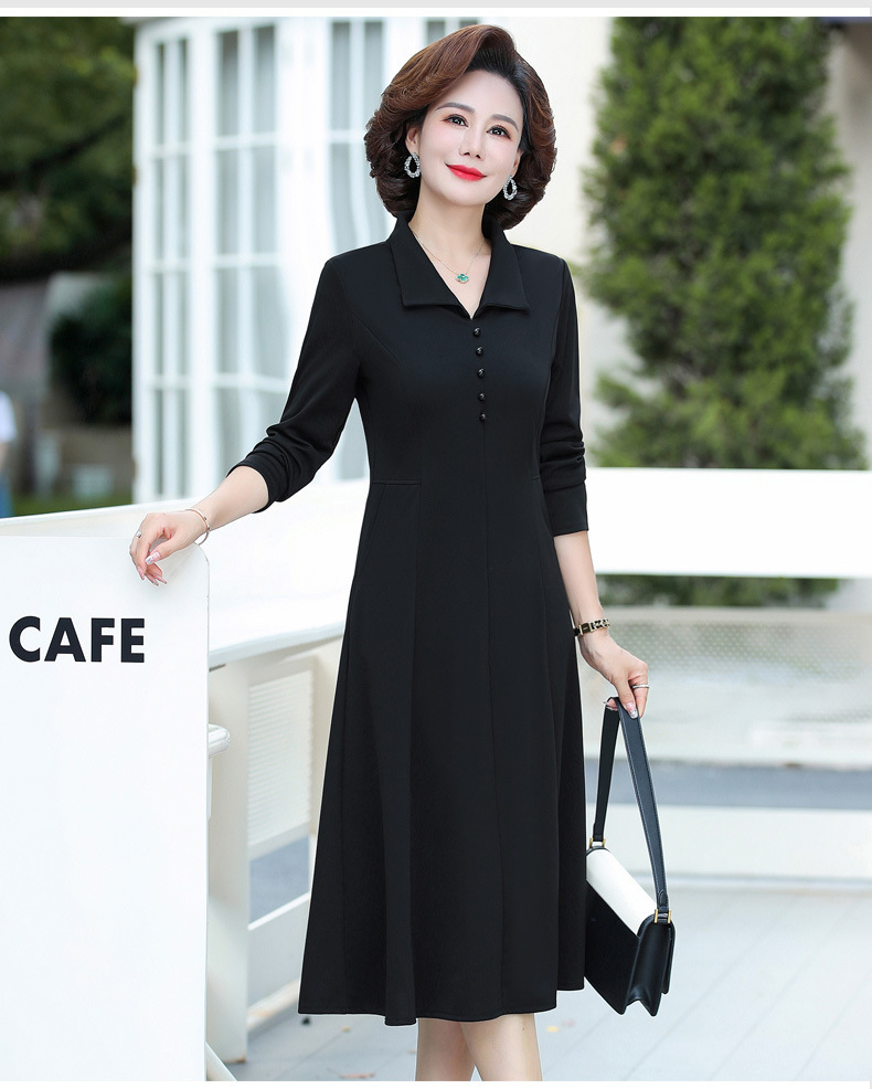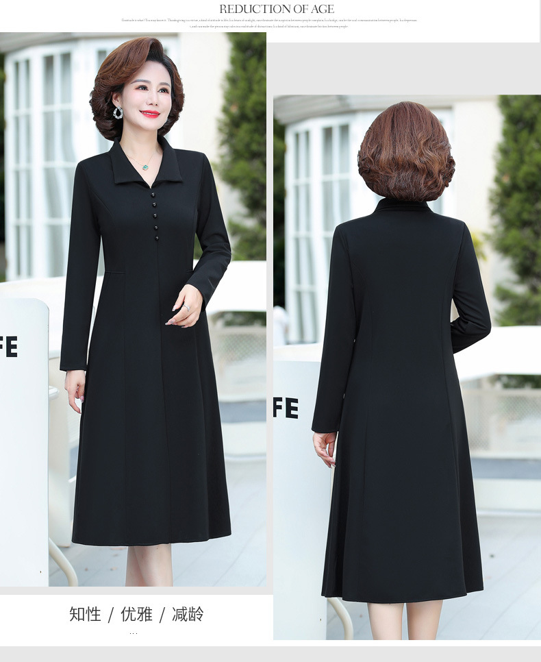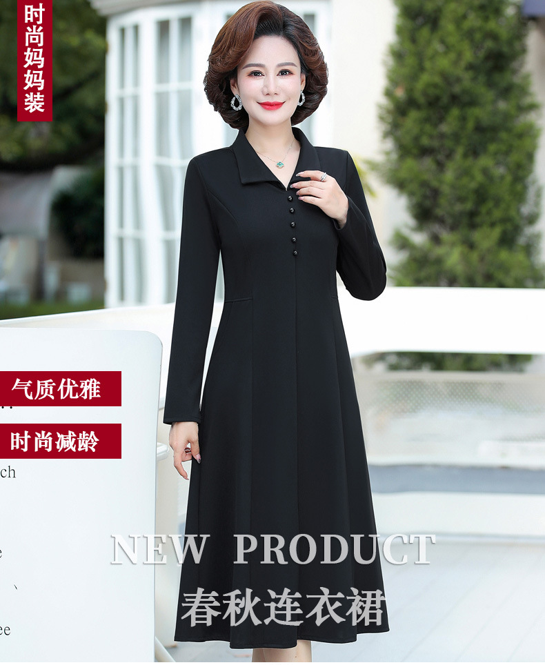 A simple, solid color lapel pullover long-sleeved women's dress for the elderly in autumn, which can be delivered on behalf of the mother