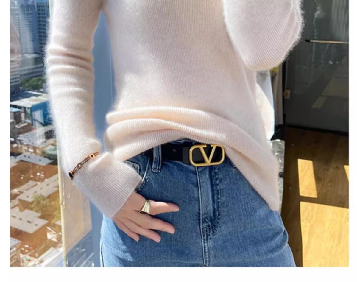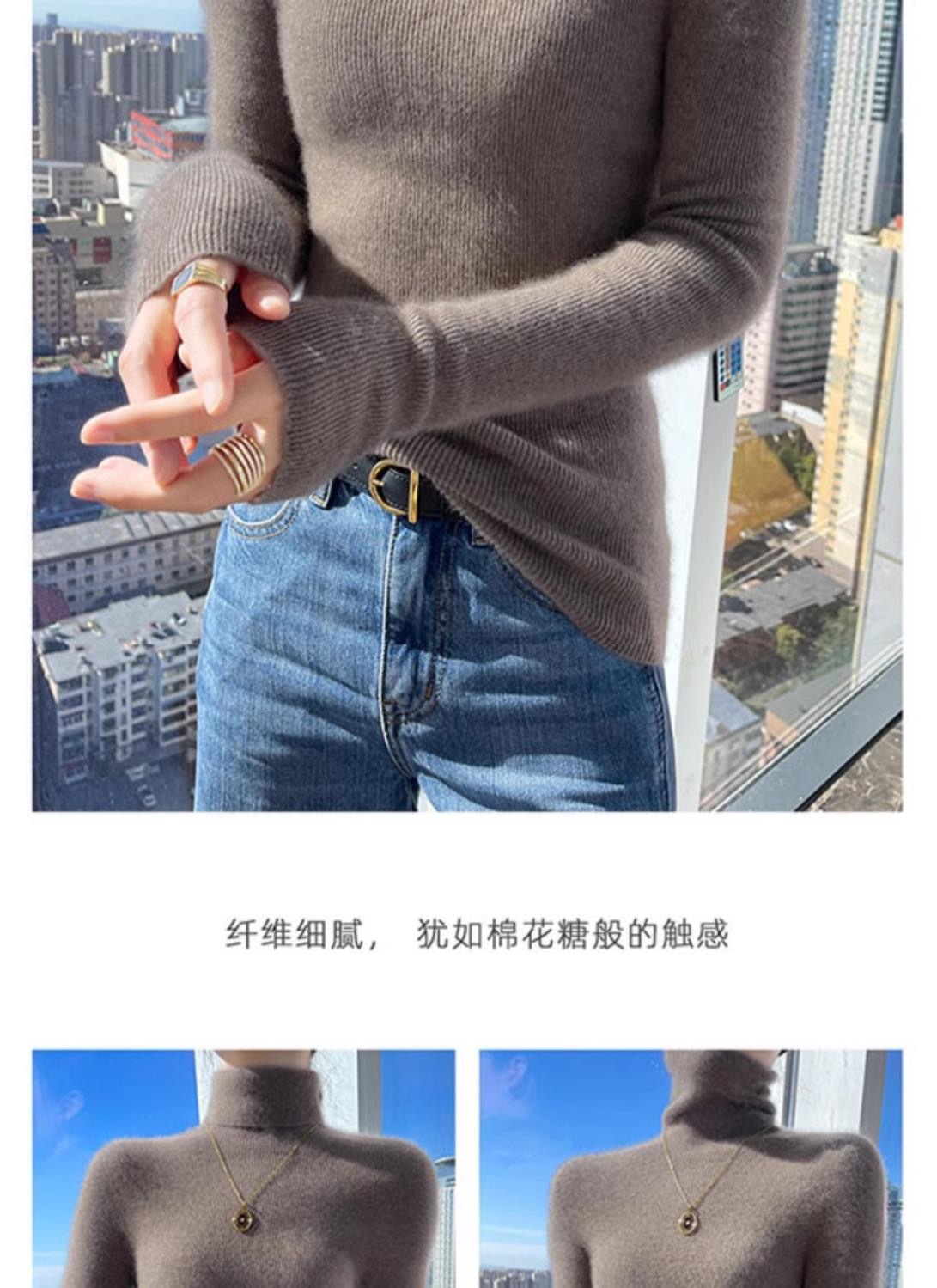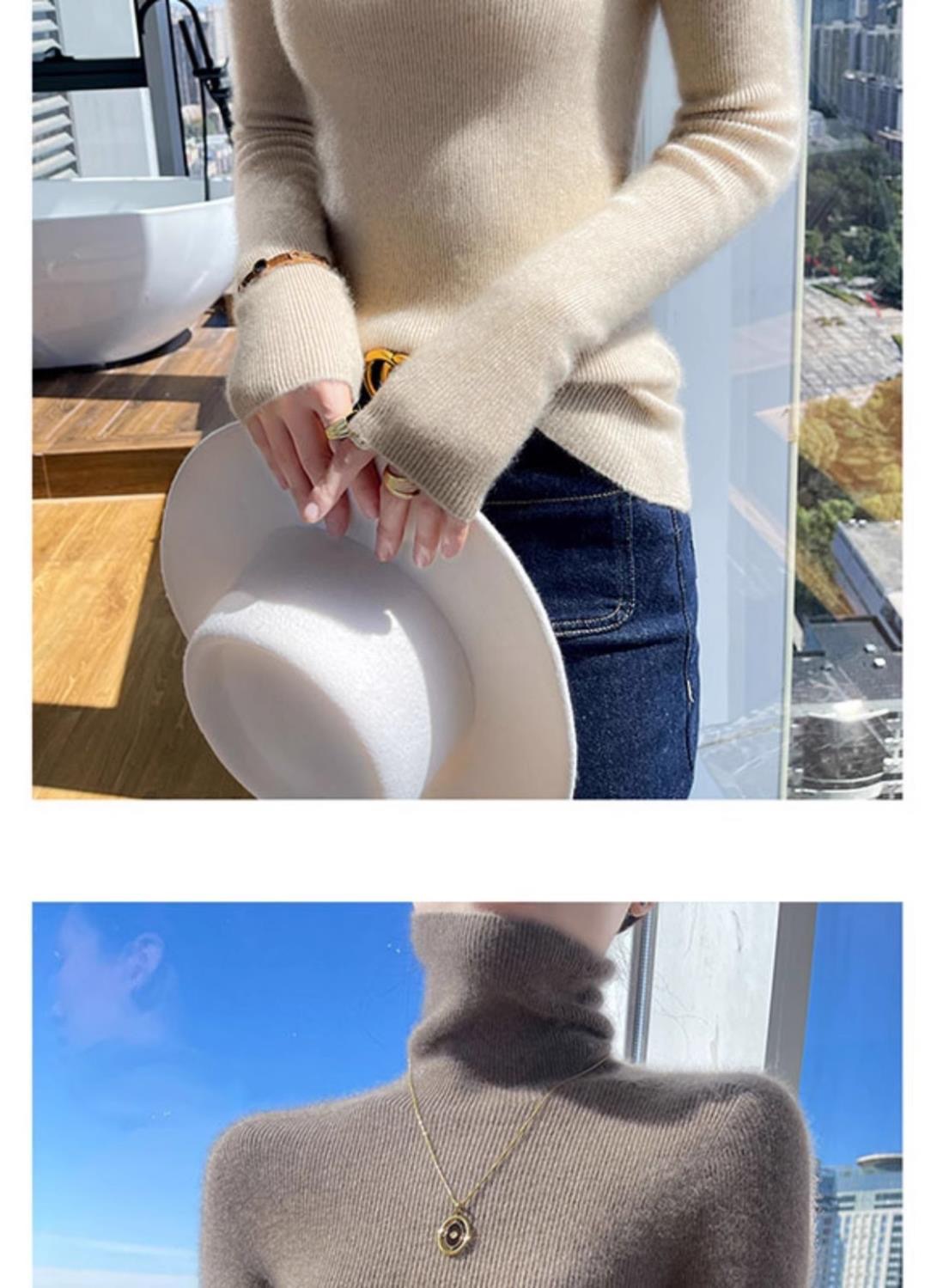 A stylish and fashionable semi-high-neck knitted top for women in autumn and winter. It's a slimming long-sleeved top with a mid-neck and a sweater underneath