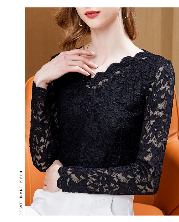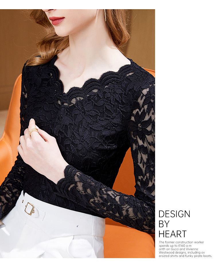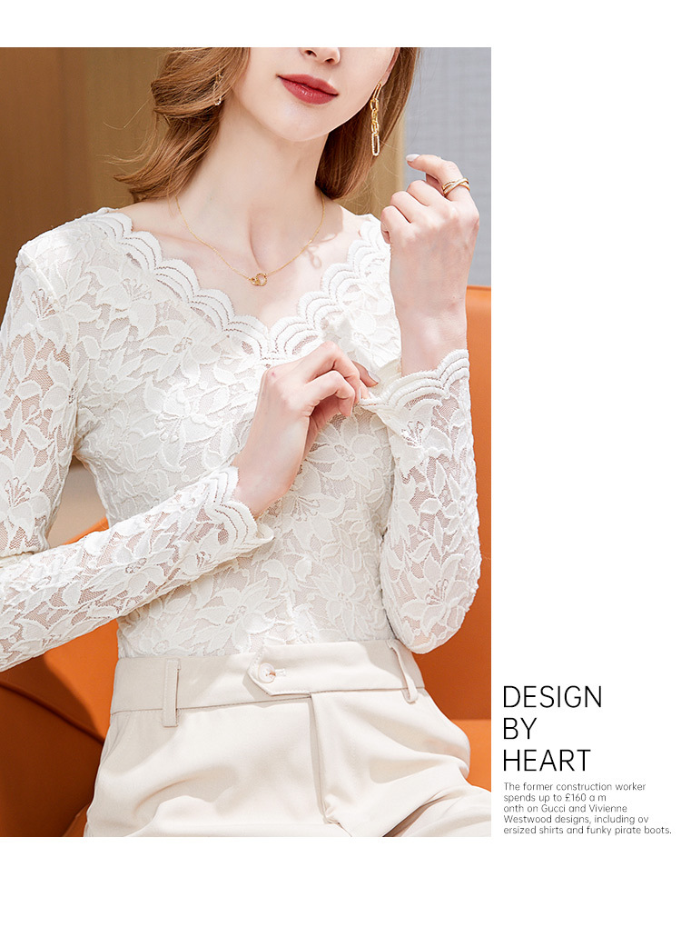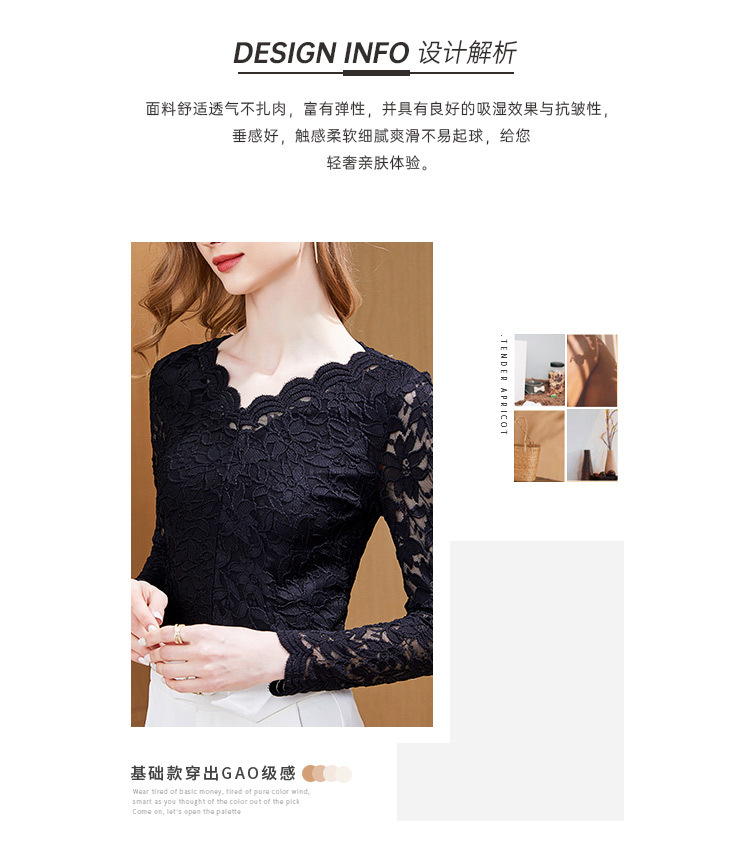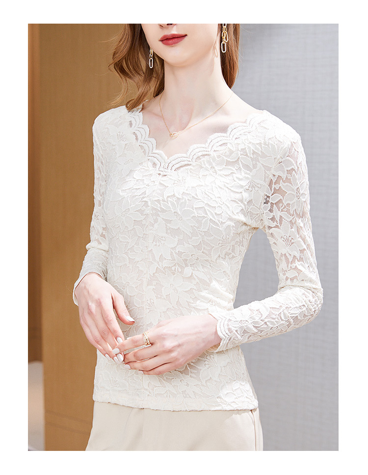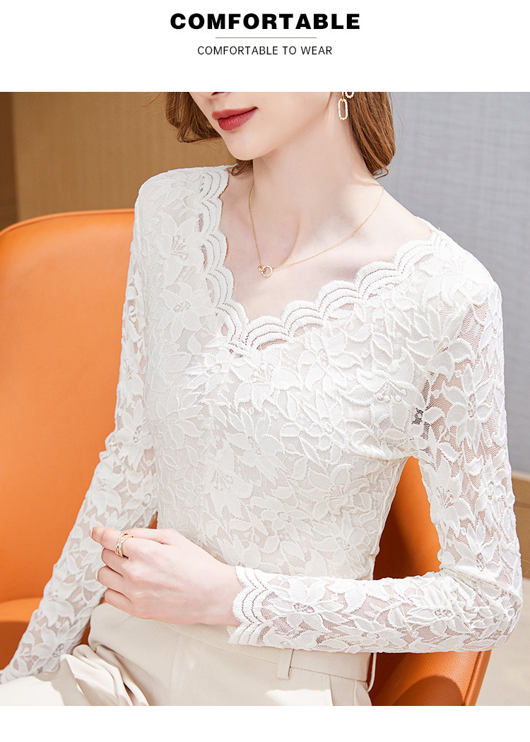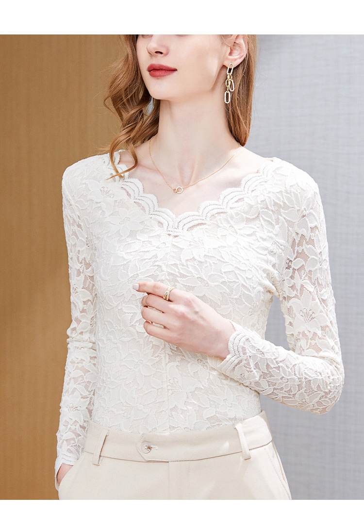 A stylish V-neck lace top with a base layer in the European and American style, a new hook-patterned women's innerwear top