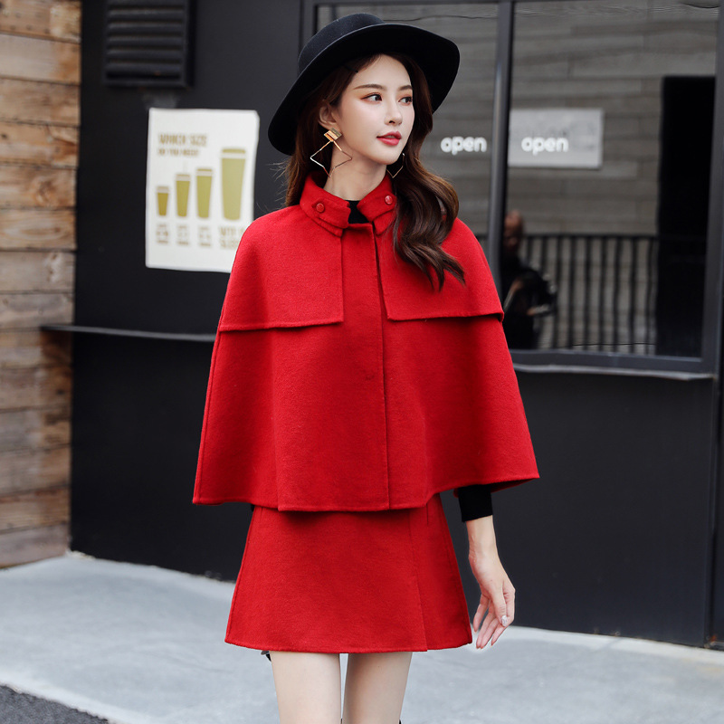 A two-piece chanel-style suit dress, a shawl cape, and a woolen coat are stylish for women in autumn and winter. Short people look tall and fashionable