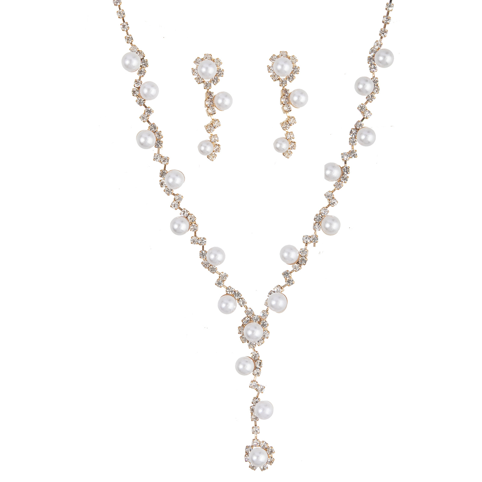 A two-piece set of V-shaped pearl necklace and earrings for brides' wedding accessories is a cross-border bestseller. Wholesale of luxurious and elegant water diamond chain