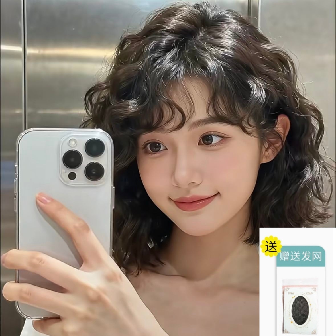 A wig for women with short curly hair, wool curls, egg curls, French style, fluffy and laid-back, fashionable and youthful autumn and winter full set