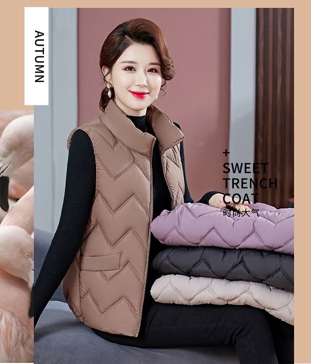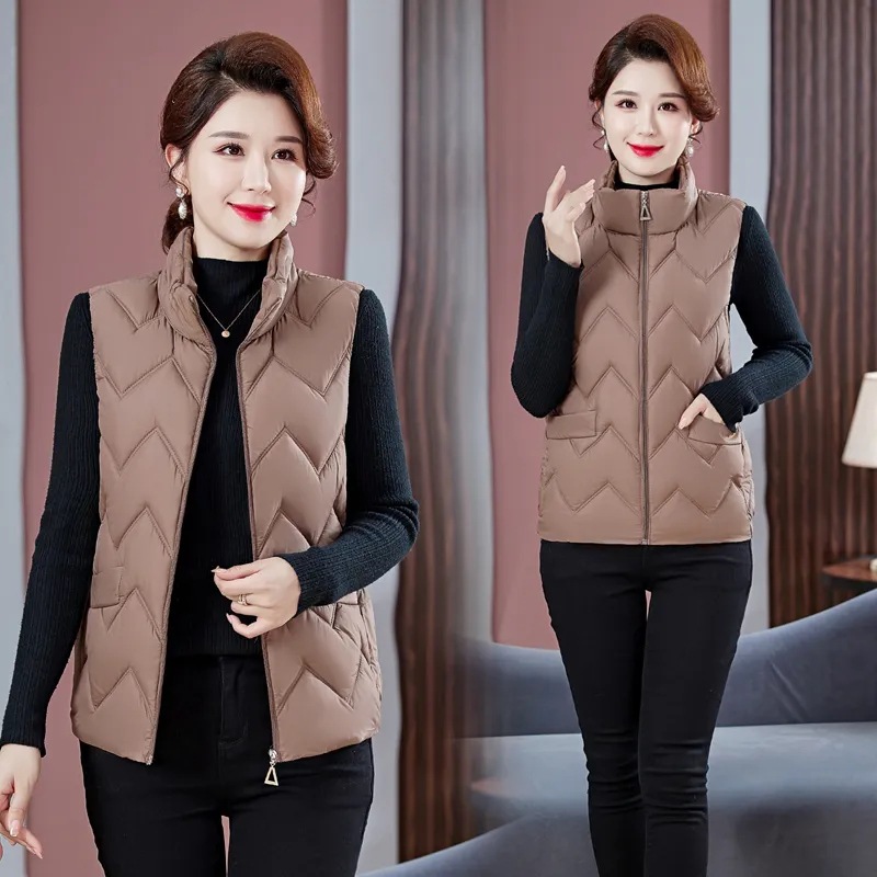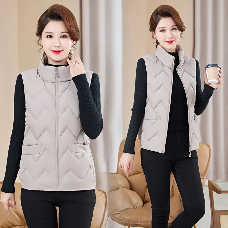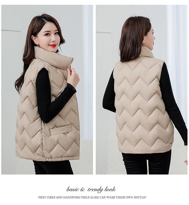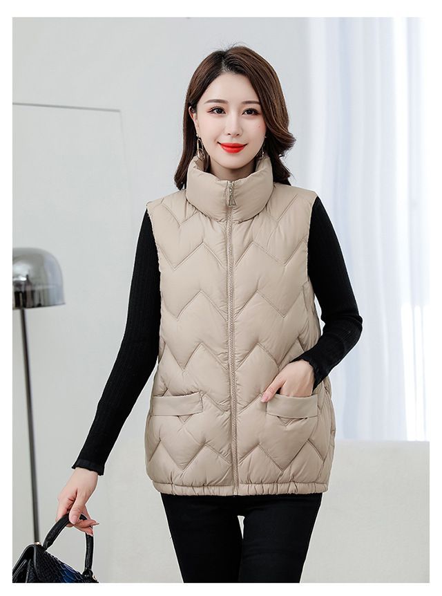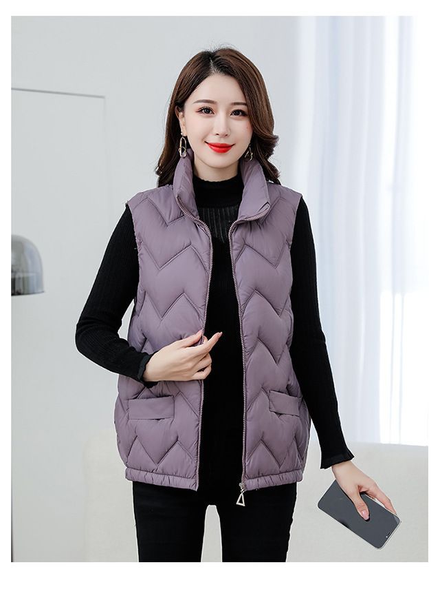 A women's autumn and winter fashion vest jacket with a casual and light down cotton coat, versatile sleeveless solid color warm waistcoat