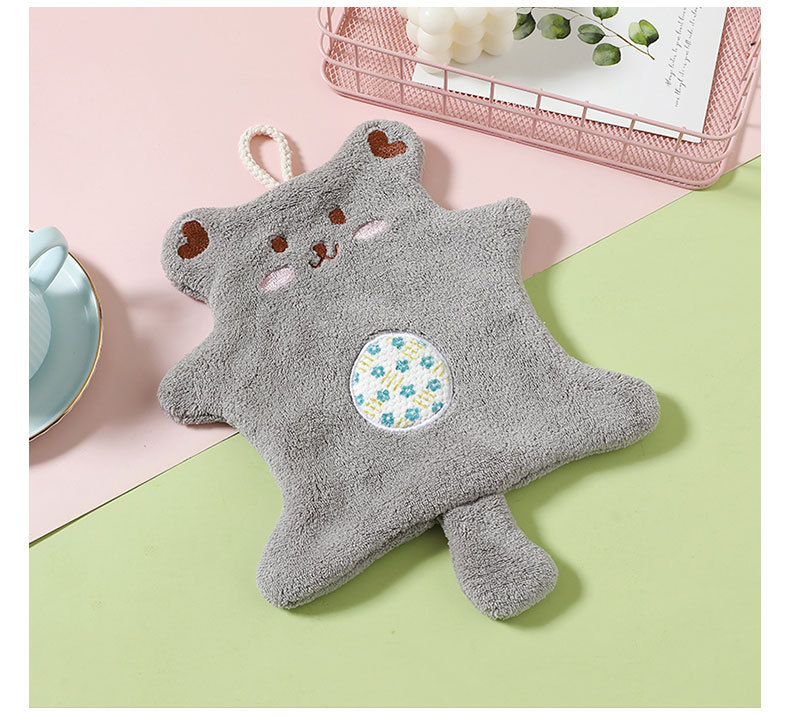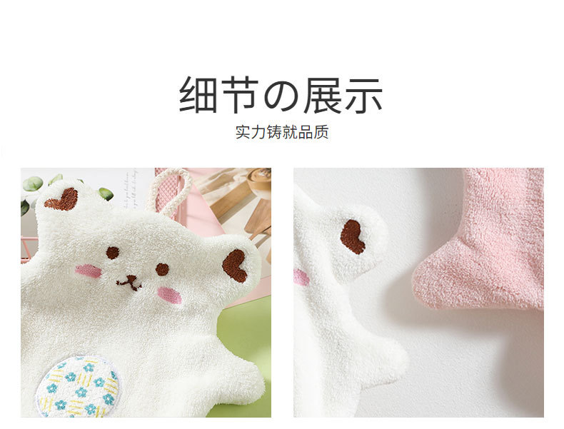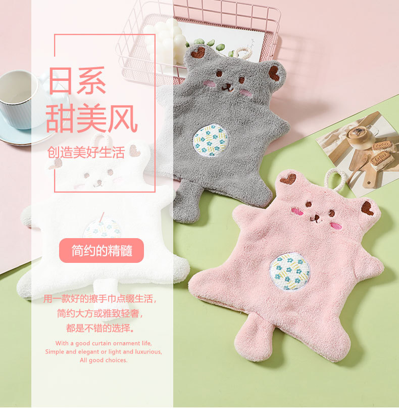 Absorbent coral velvet hanging hand towels, bathroom and kitchen national trend cartoon bear hand towels, souvenirs, children's towels