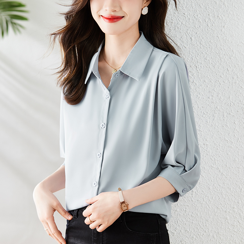 Acetate satin blouse, women's short-sleeved summer new three-quarter sleeve shirt, professional French style chiffon top for spring and autumn
