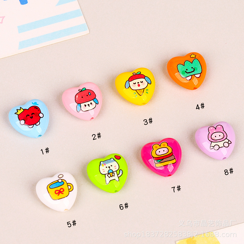 Acrylic cartoon heart-shaped beaded double-sided diy mobile phone chain, bracelet, keychain, hair tie, hair accessory, beads