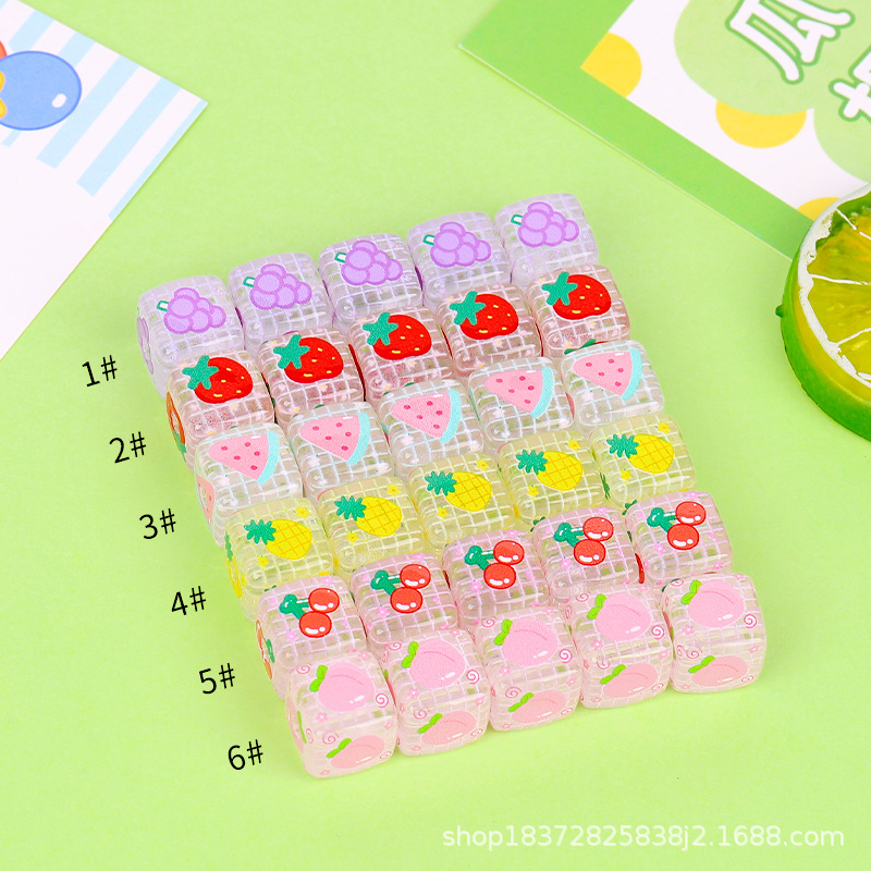 Acrylic fruit-printed transparent square beaded bracelet, mobile phone chain, perforated diy handcrafted accessory material