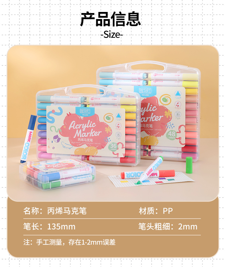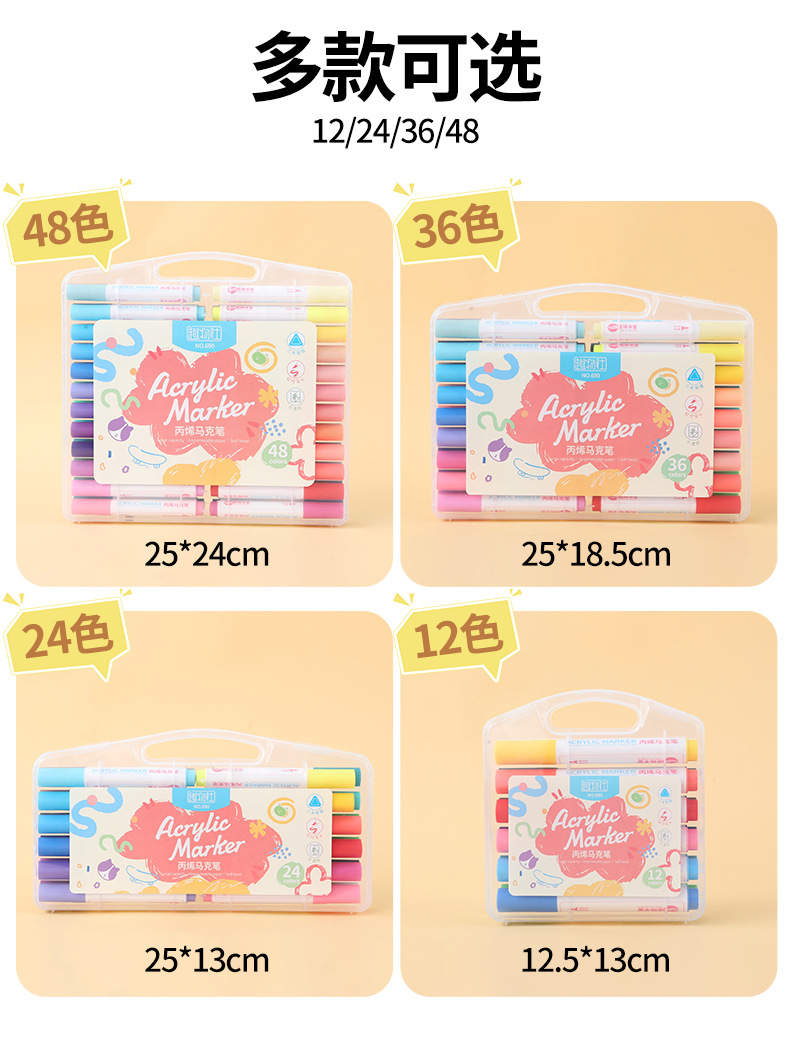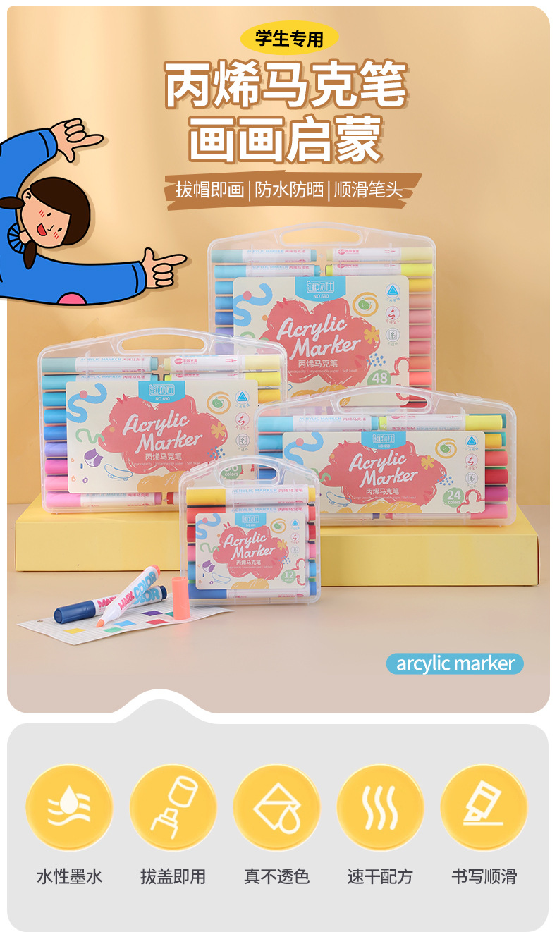 Acrylic marker pen, triangular rod, single-head soft pen, large-capacity ink drawing pen, student special acrylic pen, watercolor marker pen, back-to-school season, easy to clean, children's drawing