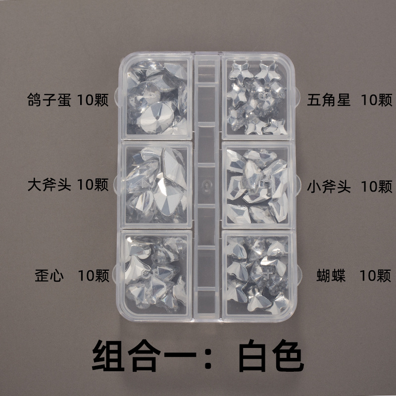 Acrylic nail art accessories, pointed-bottom axe, tilted heart, butterfly, egg-shaped diamond mixed combination, nail small accessories, pasted diamonds