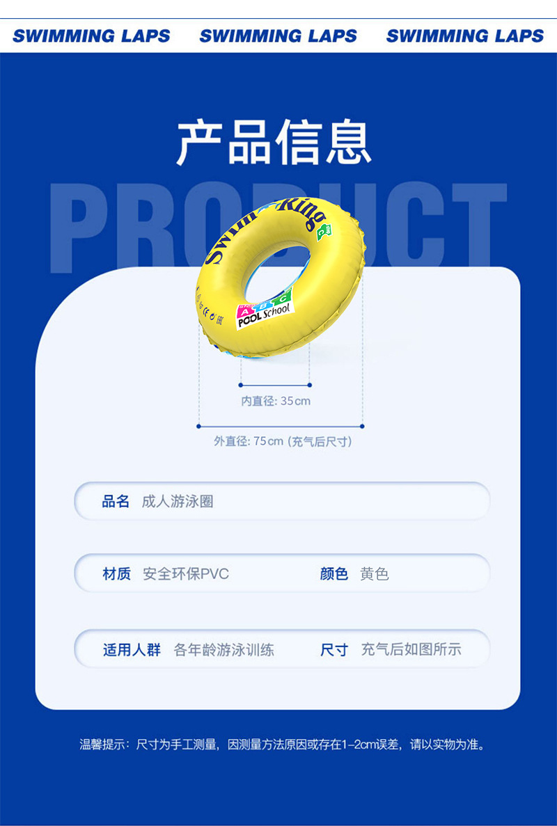 Adult and children's thickened anti-rollover swimming rings, men's and women's life rings, beginner's larger water float rings with handles