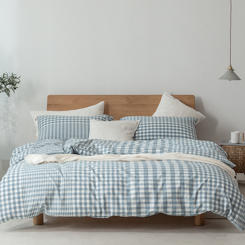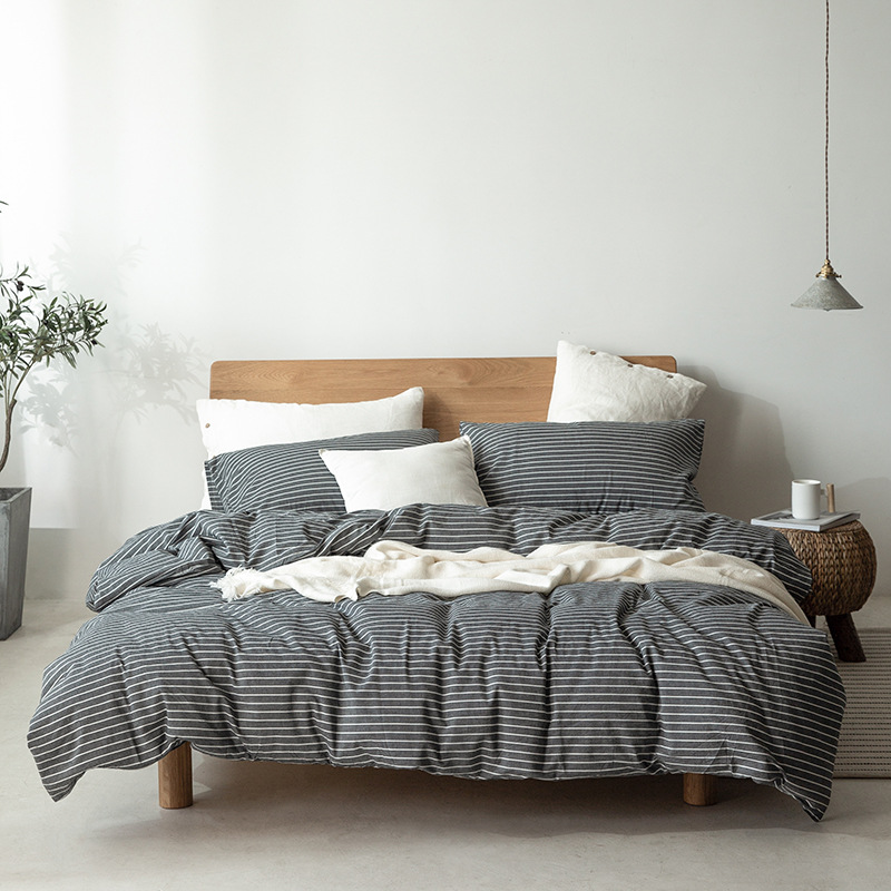 All-cotton yarn-dyed washed cotton four-piece set, pure cotton Japanese-style simple plain color quilt cover, bed sheet, bed hat style, student dormitory