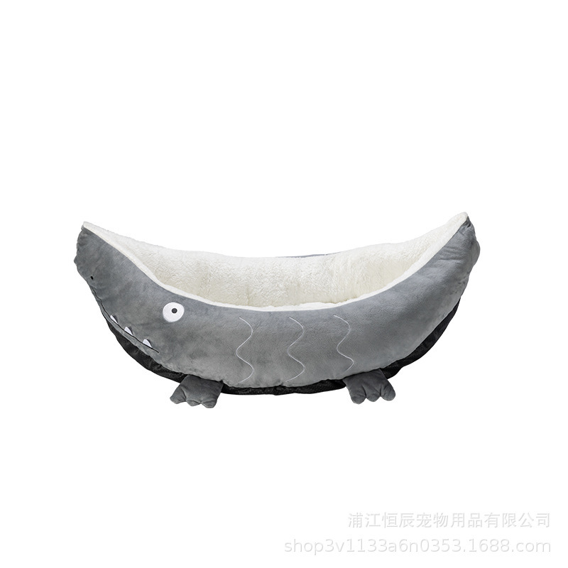 Alligator cat bed, small dog bed, double-layer non-stick pet bed, all-season suitable for neck protection, breathable cat bed, cross-border